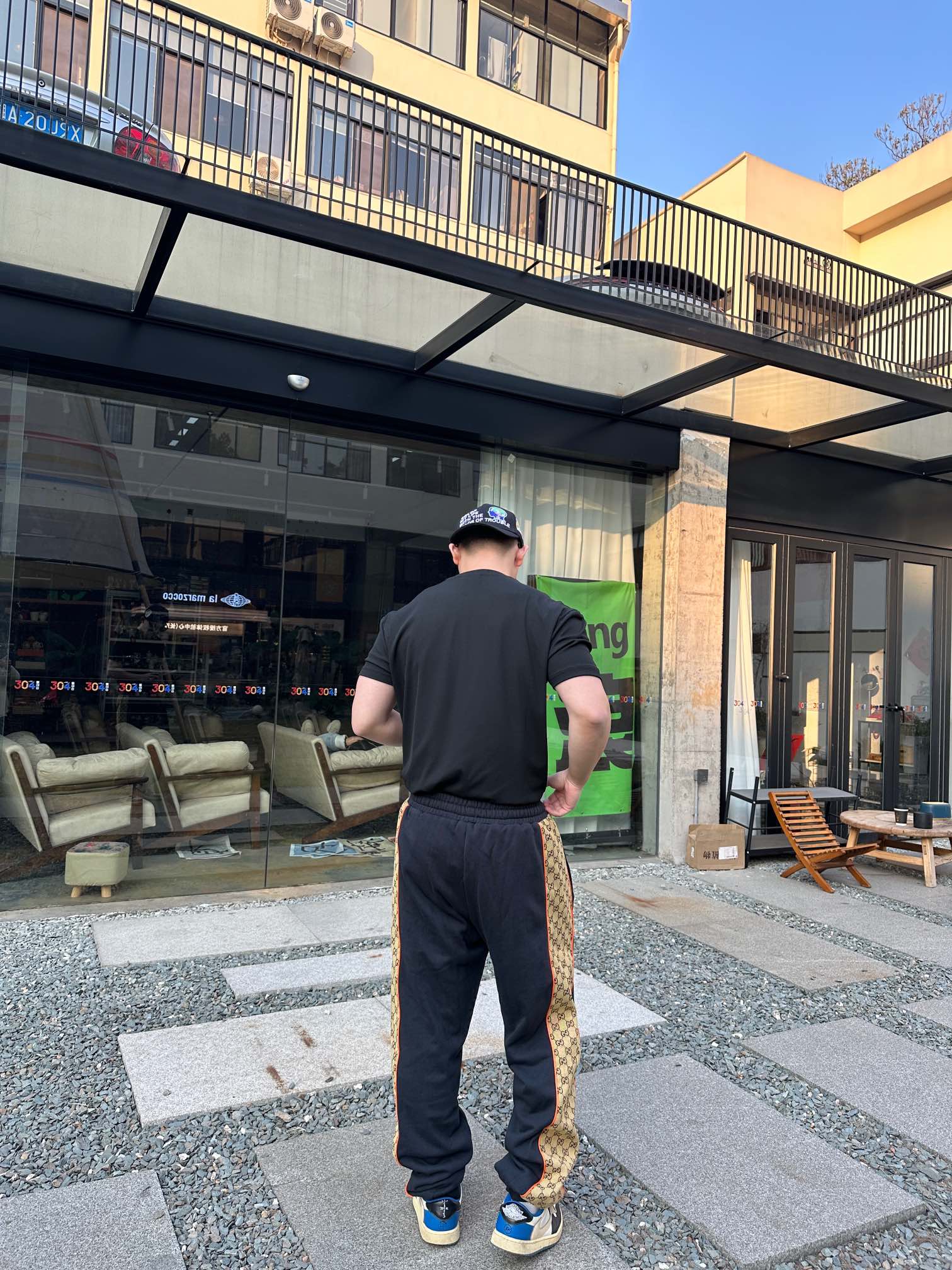 GUCCI/古驰 老花拼接拉束腿长裤 上身效果#