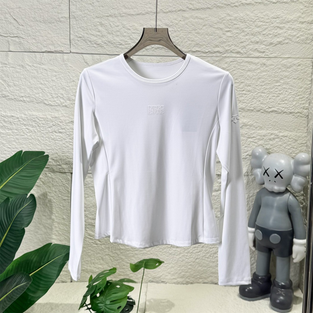 💰95 独家臻品 DESCENTE/迪桑特女款长袖T恤,户外运动打底衫女士跑步健身衣. 颜色:黑色 白色 尺码:M L XL 2XL M L XL 2XL 衣长:57 59 61 63 肩宽:39 40 42 43 胸围:48 50 52 54 腰围:42 44 46 48 袖长:61 62 63 65