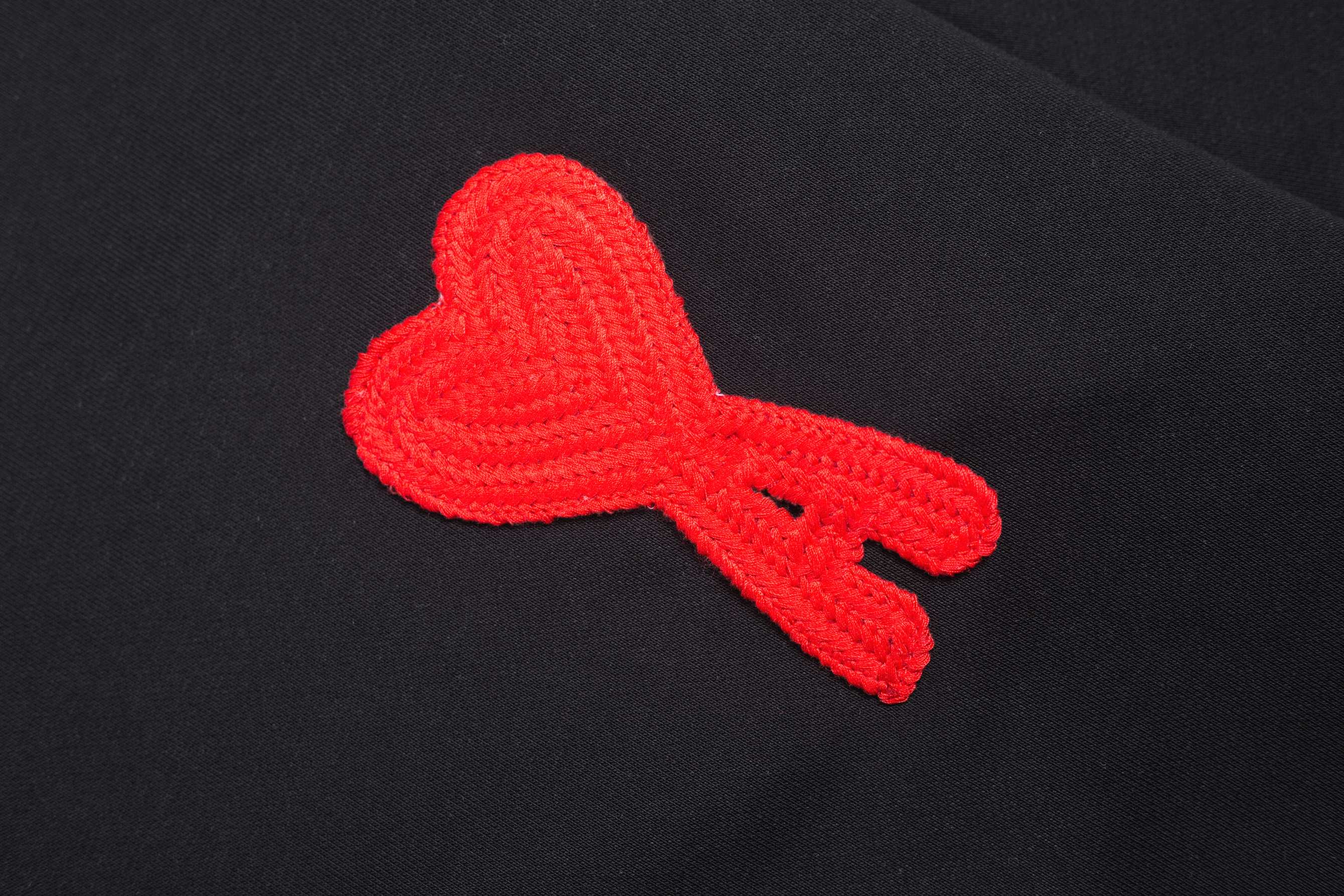 MQ906 P82 AMI 25秋冬新品经典大爱心章仔圆领套头卫衣 订制360克纯绵面料 高版本 新主麦 洗水麦 男女同款 颜色:黑色红心, 尺码:S-XL