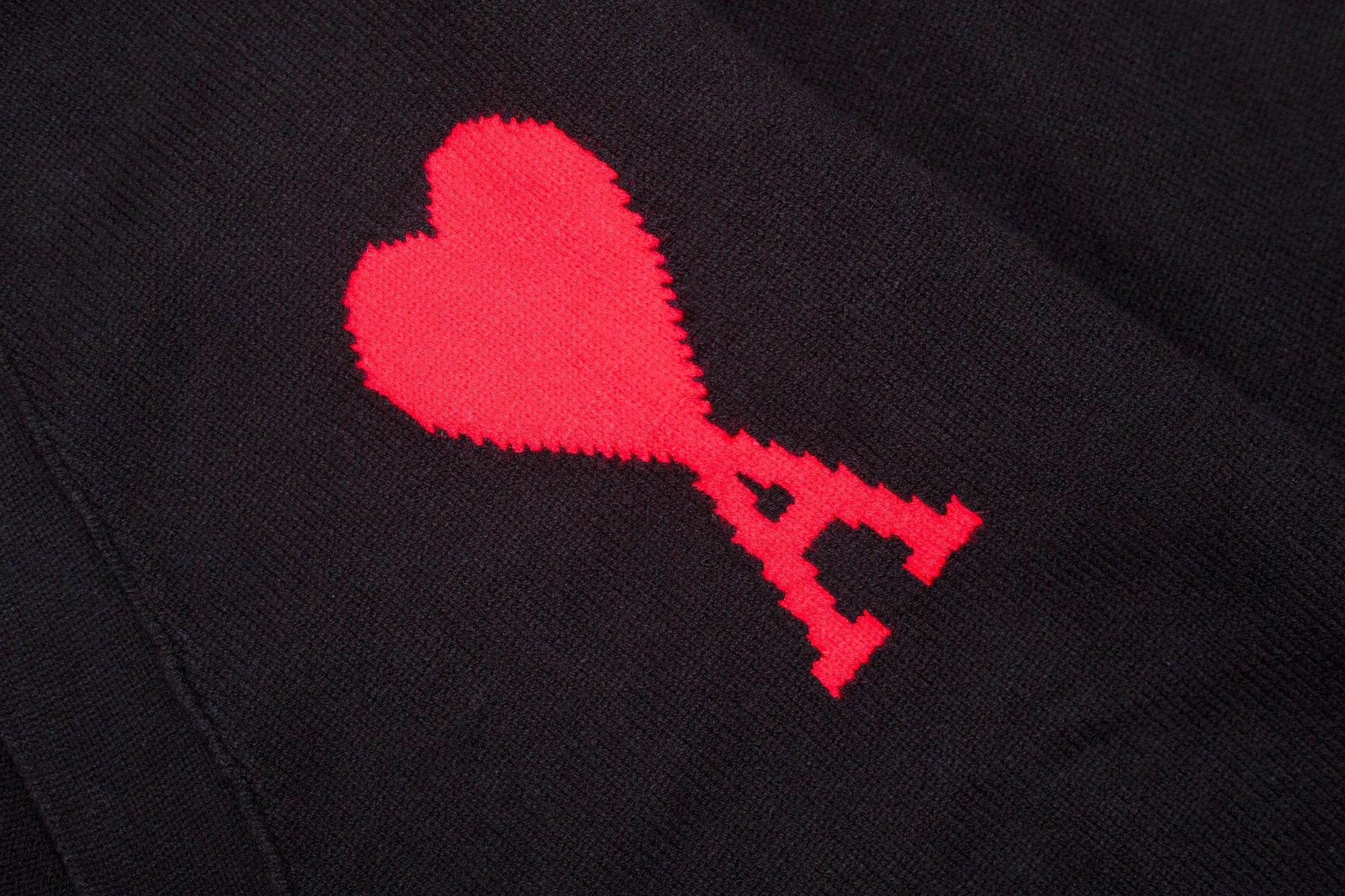 P98 款号: MQ802 AMI经典大爱心系列提花开衫毛衣 最高版本 支持对比 颜色: 黑色红心, 尺码:S-XL