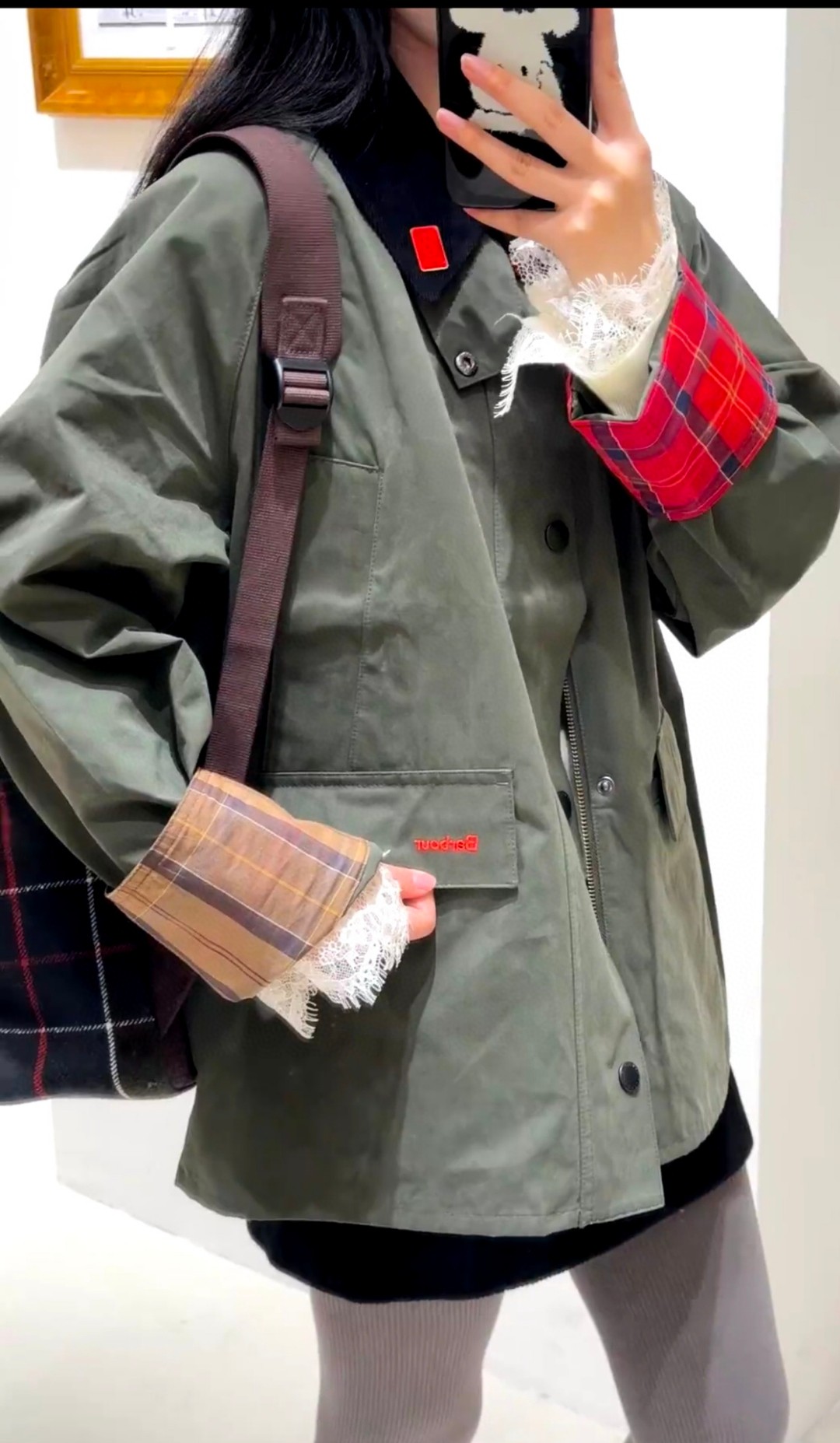 供💰175 Barbour蛇年限定无蜡夹克,静奢老钱风骨,解构巴恩山野叙事 【隐奢造物】以无蜡革新致敬英伦户外魂,卡其与鼠尾草绿浸透世家衣橱密码——前者如陈年羊皮纸拓印时光,后者似雾中苔原漫生克制诗意。纯铜五金随年月氧化出独属主人的包浆,蛇形图腾别针暗伏领间,将生肖玄机炼成新贵暗语。 以利落剪裁驯服粗犷基因,内衬暗纹织入老钱庄园地图,双针埋夹工艺构筑风雨屏障。无蜡处理让山系灵魂适配都市经纬,羊绒混纺触感在克制中释放隐秘的阶级勋章。 Coro:卡其色 鼠尾草绿 SIZE:S-XL S M L XL 胸围:122 126 130 134 衣长: 68 70 72 74 肩宽: 49 50.2 51.4 52.6 袖长:77.3 78.8 80.3 81.8