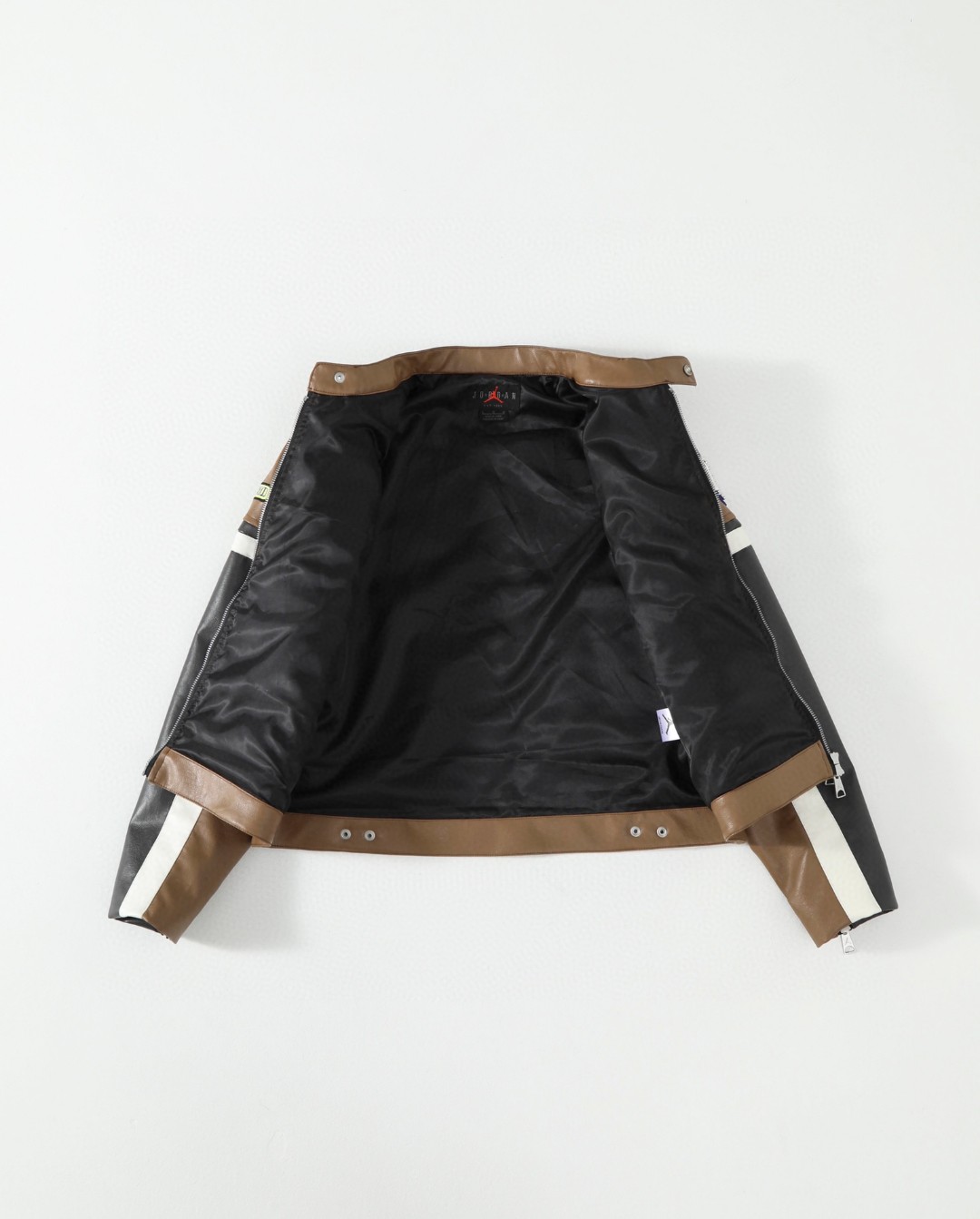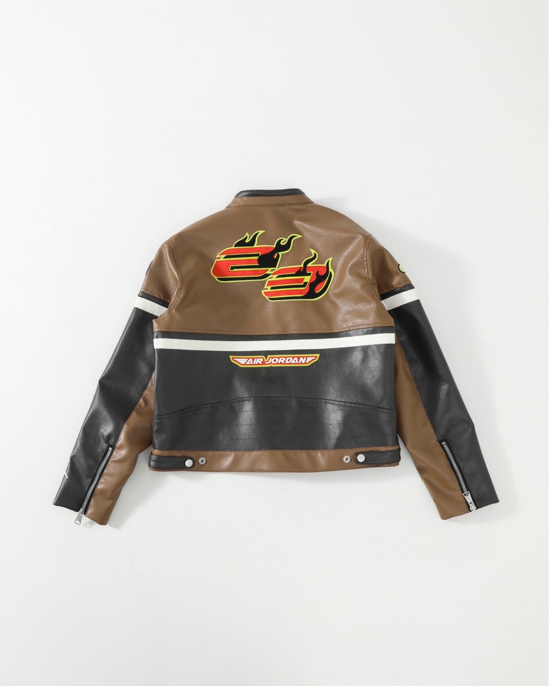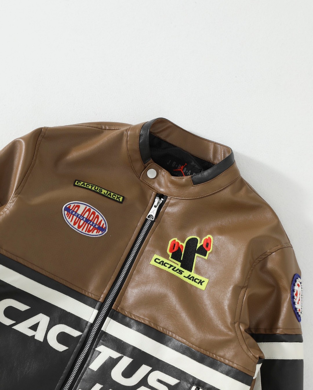 供💰195 Jordan Jordan x Travis Scott(王嘉尔同款) 联名系列 SS25 胶囊系列 美式复古学院风印花拼接皮质立领夹克 Travis Scott 携手 Jordan Brand在初次推出的女装系列中匠心融入摩托车越野赛的文化和时尚同时采用优质材料结合修身版型令该系列的每款服装皆彰显醒目大胆风范😎😎 缎面里料按扣衣领和衣袖拉链设计将现代风范与摩托风格巧妙糅合整版饰有刺绣橡胶贴片点缀别具一格的创意图案,性别美式街头风,真的就 百穿不厌 假期这样穿 拍照轻轻松松出片赞满九宫格 就是一整个 秒变酷姐狠狠拿捏潮酷感十足 大胆碰撞突破穿搭壁垒 别具个性的穿搭 还是自己说了算 颜色:棕色 尺码:M-L-XL-XXL M L XL XXL 胸围:106 110 114 118 衣长: 54 56 58 60 袖长: 61 61.5 62 62.5 肩宽: 45 46.2 47.4 48.6