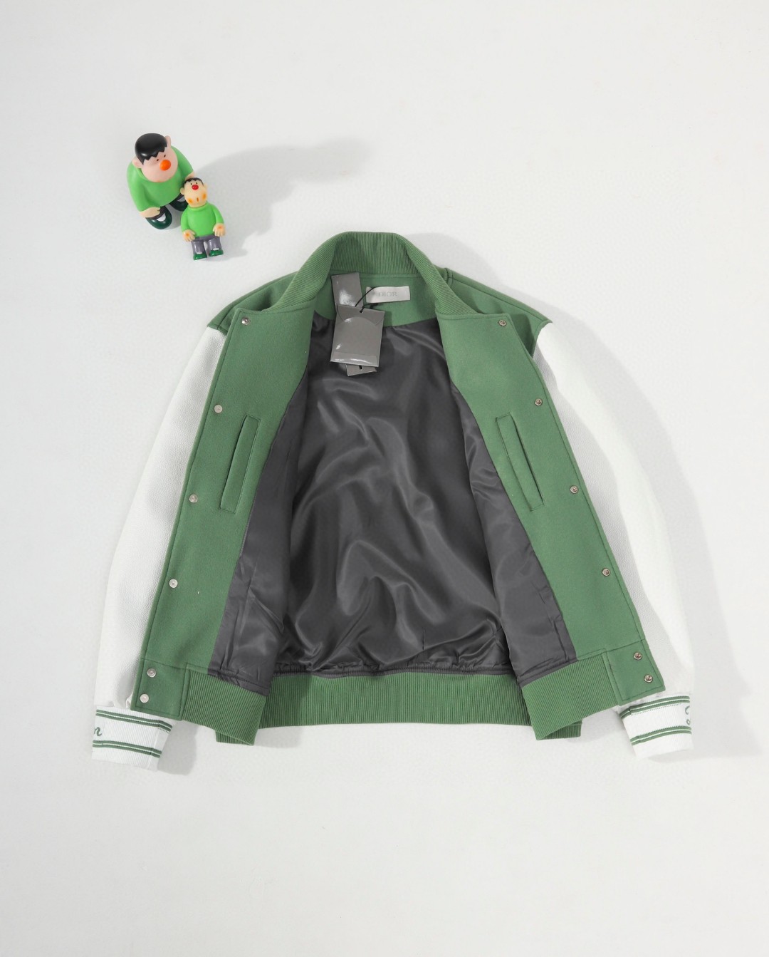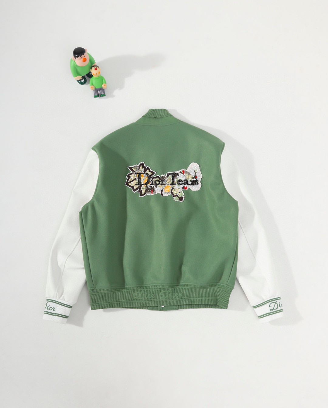 供💰150 正确版本 顶级复刻 Dior/迪奥xDenim TEARS联名棒球服夹克外套 Lisa同款 众多巨星纷纷上身的一款夹克精致的Dio Tears高定风格补丁 并以桑蚕丝线、珠饰和仿水晶手工刺绣的多色棉花造型装饰,彰显精妙传统工艺,两种材质打造双色调效果,简直就是一件艺术品!休闲和经典的完美融合 展现50-60年代美式复古风潮以及常青藤学院风。 色织提花罗纹工艺,720g高克重羊毛呢面料 精心制作 工艺复杂,仅此一批 喜欢的一定不要错过的一款棒球服! 颜色:绿色拼白袖 尺码:M-XL M:衣长68胸围124袖长55 L:衣长70胸围128袖长56 XL:衣长72胸围134袖长57