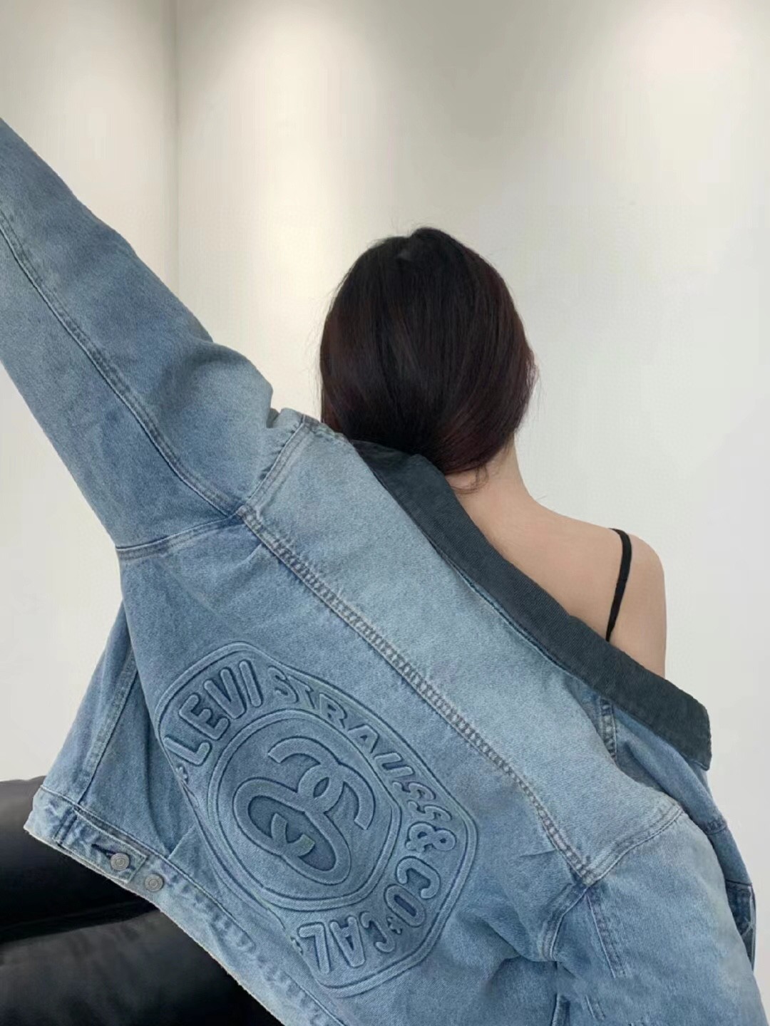 供💰215 Stussy x Levi's 150周年浮雕牛仔外套夹克 Levi' s150th Anniv.xStussy联名系列将在本周开启发售,为了庆贺品牌诞生150周年,这个地表最古老的丹宁制造商将在今年带来重磅的作品。 街头鼻祖Stussy热度不减持增美式工装穿搭指南简约复古每季单品都极具吸引力 整件衣服就像一件艺术工艺品,这次联名的合作标识用压印工艺附在后背处,是立体的~内里用的是竖条纹薄一点的磨毛料子加上经典的斯图西logo,,背后的浮雕质感非常好,整体修饰身材,肩膀线条,黑八内衬也是非常用心了,官方型录还给出两面穿的示范! 像这种经典百搭款 穿个几年都不会过时的 不要错过哟~正品开版 所有辅料一比一订做 尺码:M~XXL 尺码 衣长 胸围 肩宽 袖长 M 67 116 50.2 61 L 69 120 51.7 62 XL 71 124 52.2 63 XXL 73 128 53.7 64