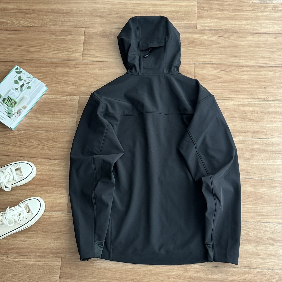 发280💰!代工厂出货!原单好货!2025凯乐石KAILAS单口袋款式 M8系列IC连帽软壳外套防风防泼薄绒保暖户外登山徒步男,用途:春秋冬徒步 材质:主布面:88%锦纶12%氨纶,主布底:94%聚酯纤维5%氨纶1%锦纶配布:88%锦纶12%氨纶里布:聚酯纤维版型:合体版,专为湿冷风寒环境设计的保暖软壳,适合远足徒步且兼具城市日常,采用蓄热保暖面料,外层防风防泼,内里带有立体薄绒,轻盈、保暖且透气;同时面料富有弹性,保证活动自如。 导电原纱植入,有效防止静电带来的针刺感,防止衣物吸附灰尘,保持清洁。 ·前胸和帽子区域采用贴合压胶工艺,防止湿气入侵的同时,衣身表面更精致平整。 颜色:黑色 尺码:M-XXL M肩宽50胸围110袖长61衣长70 建议115-135斤 L肩宽51胸围114袖长62衣长72 建议135-155斤 XL肩宽53胸围118袖长63衣长74 建议155-175斤 XXL肩宽54胸围122袖长64衣长76 建议175-200斤