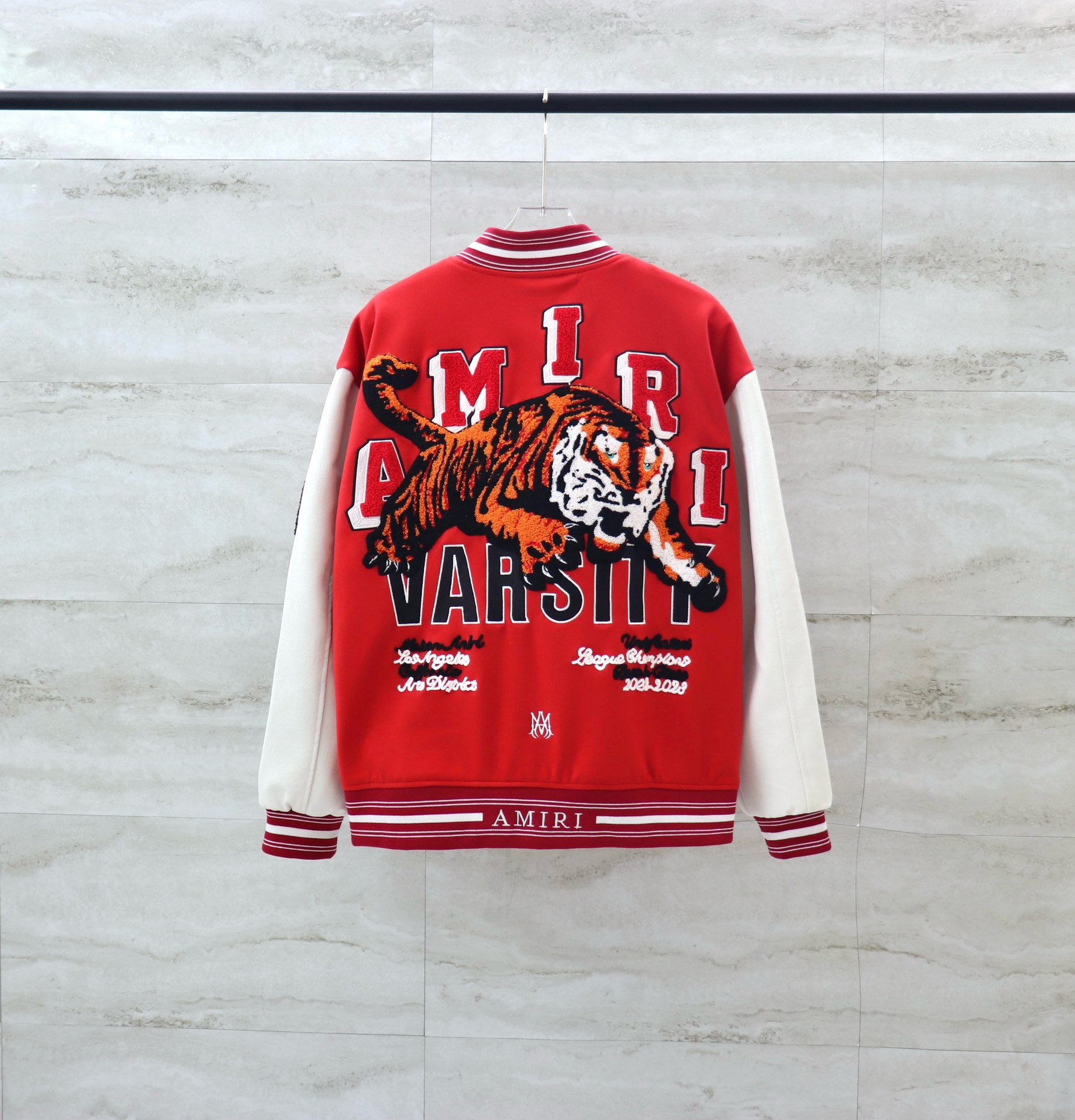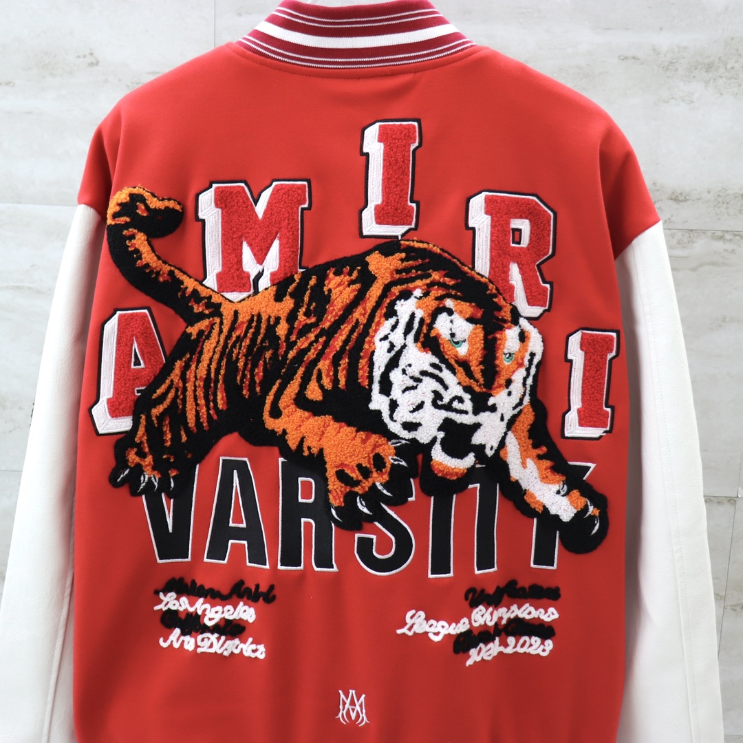 💰195 AMIRI 美式潮牌新款老虎🐅刺绣字母毛巾绒绣花棒球服外套🧥高版本 颜色:红色 码数:M-XXL