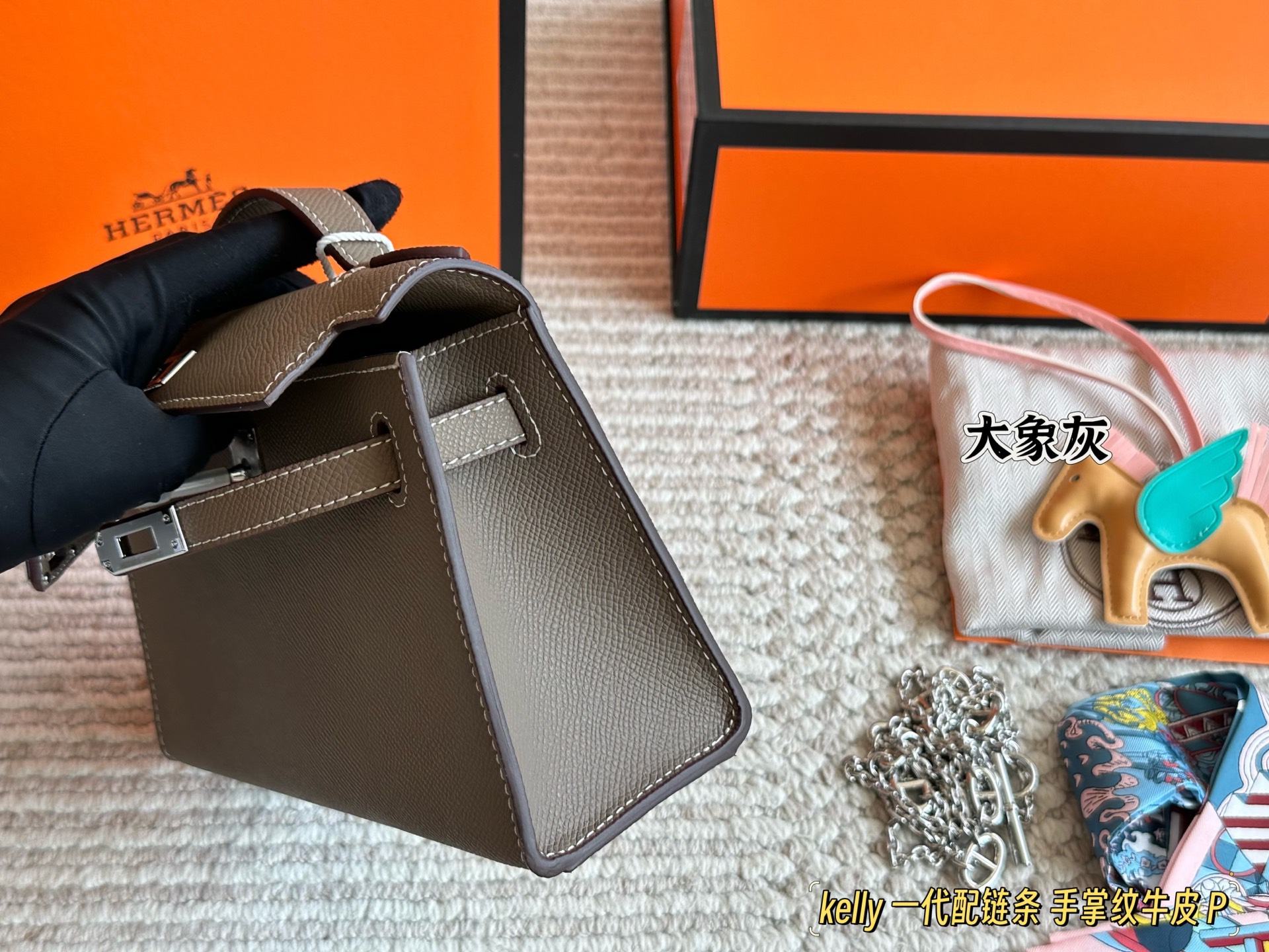 p240 牛皮mini kelly-代 全套包装配丝巾 爱马仕mini kelly-代,真的太香了,属于日常休闲跟女人味都可以驾驭的那种!自己搭配了肩带,平时带娃也可以解放双手,跟朋友下午茶手提更有feel哦!容量也非常司,,除了随身携带的化妆品,还有再放一个手机,算是小身材大容量包包的代表了吧!到手后,越用越香,值得冲! !20cm