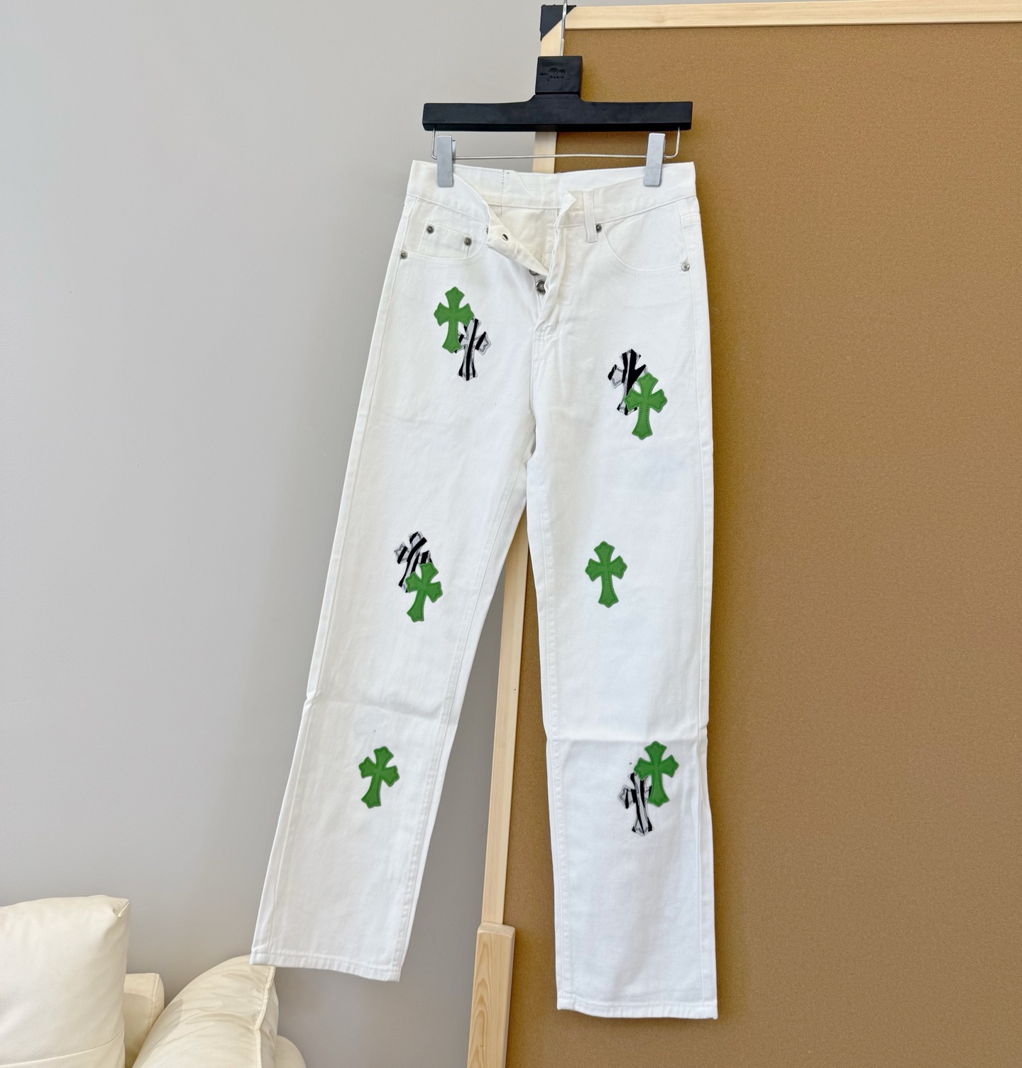 P115款号:D322 🇬🇧英国限定|Chrome Hearts克罗心绿斑马牛仔裤 英国伦敦限定苹果绿拼斑马十字架牛仔裤 SIZE #28 30 32 34