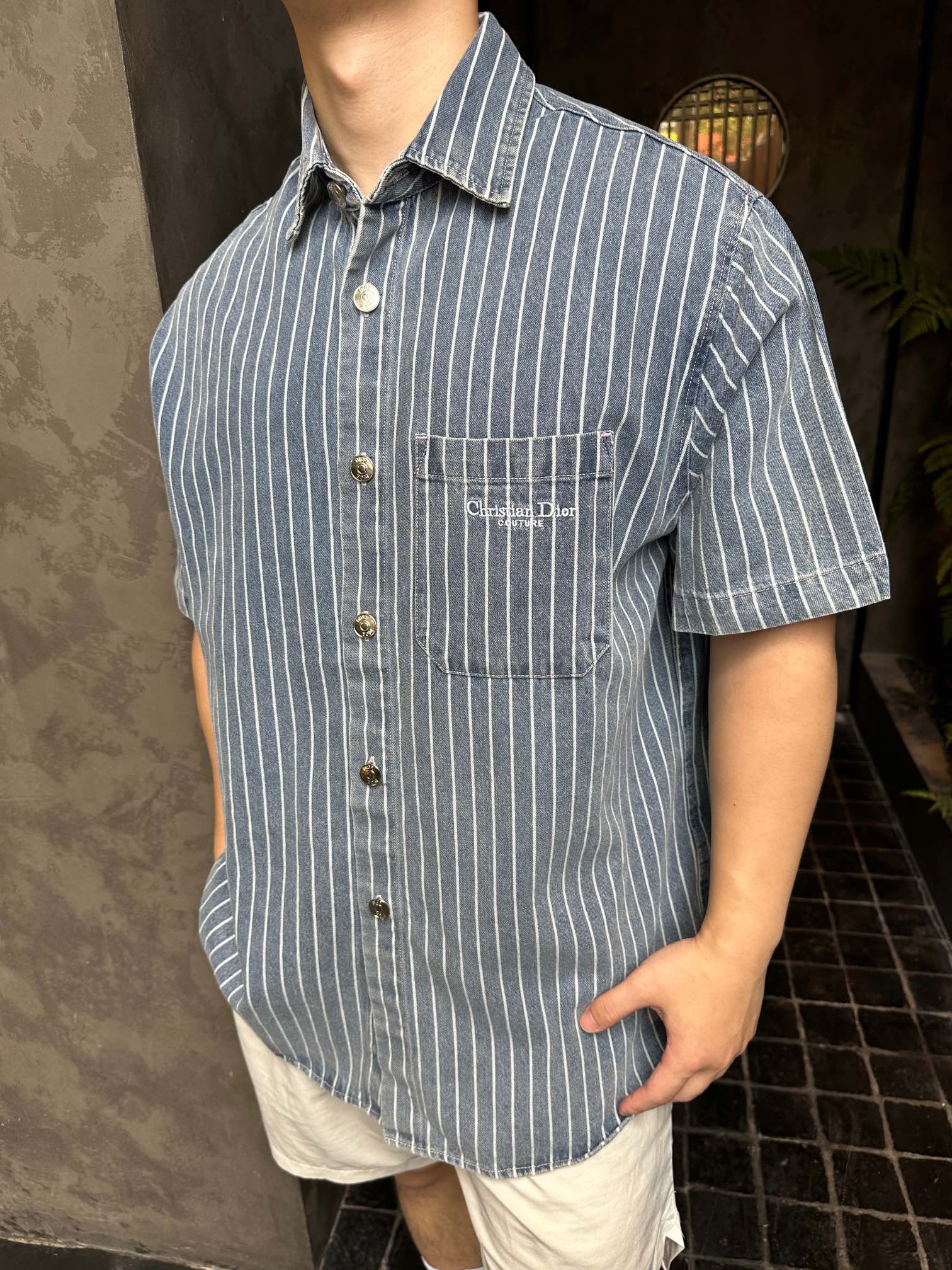 Dior/迪奥 新款棉质条纹刺绣衬衫外套 上身效果#