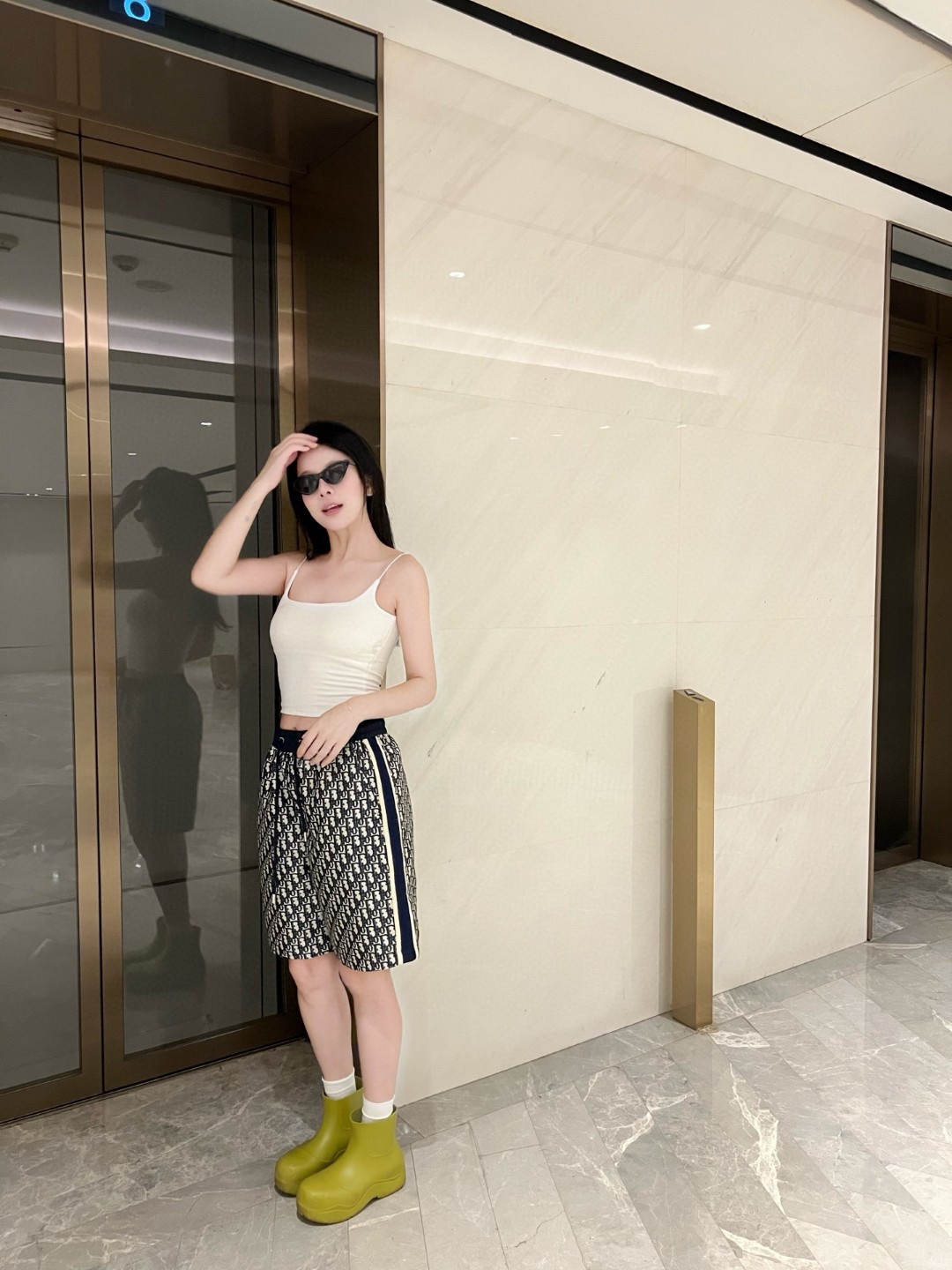DIOR/迪奥 经典老花藏蓝色提花休闲短裤 上身效果#