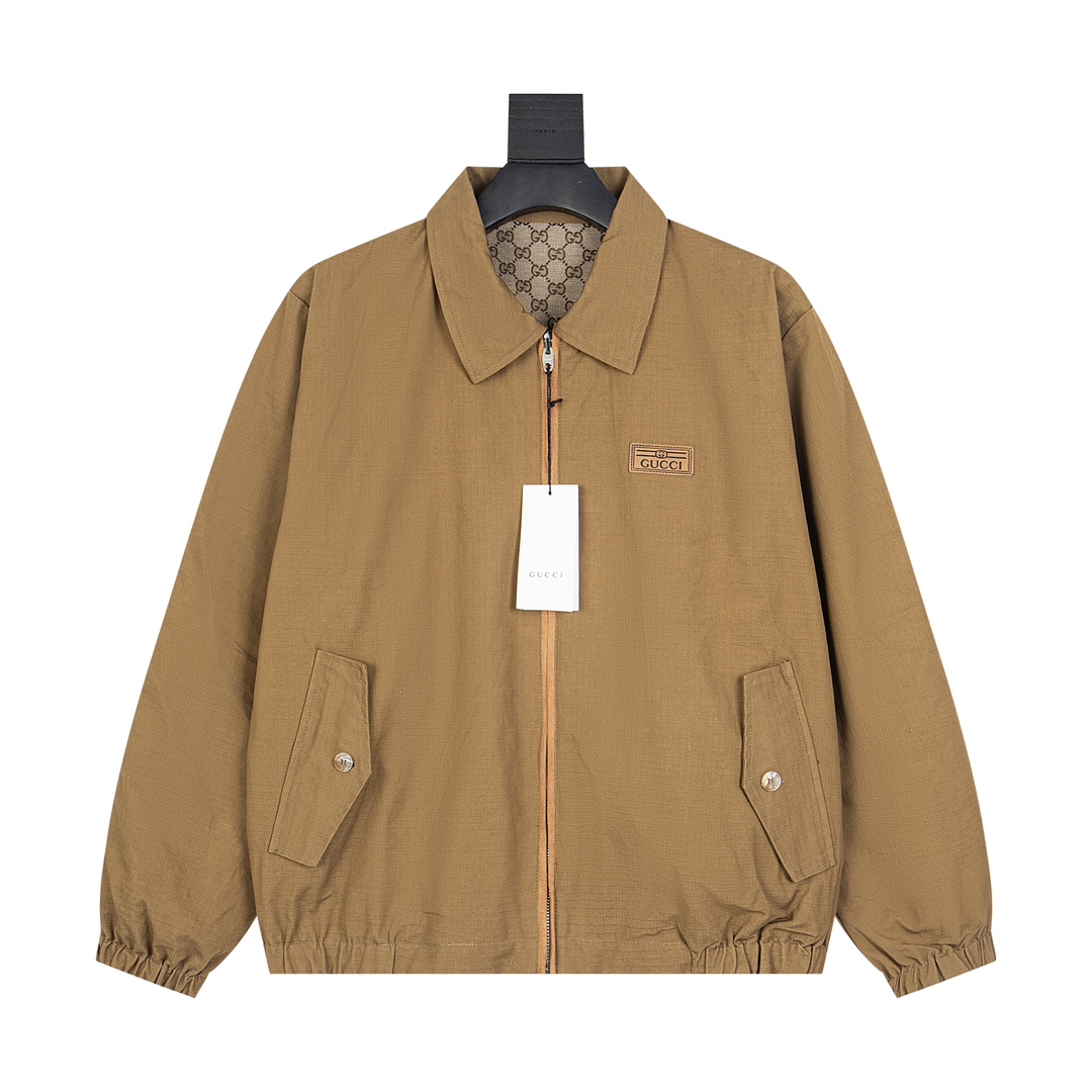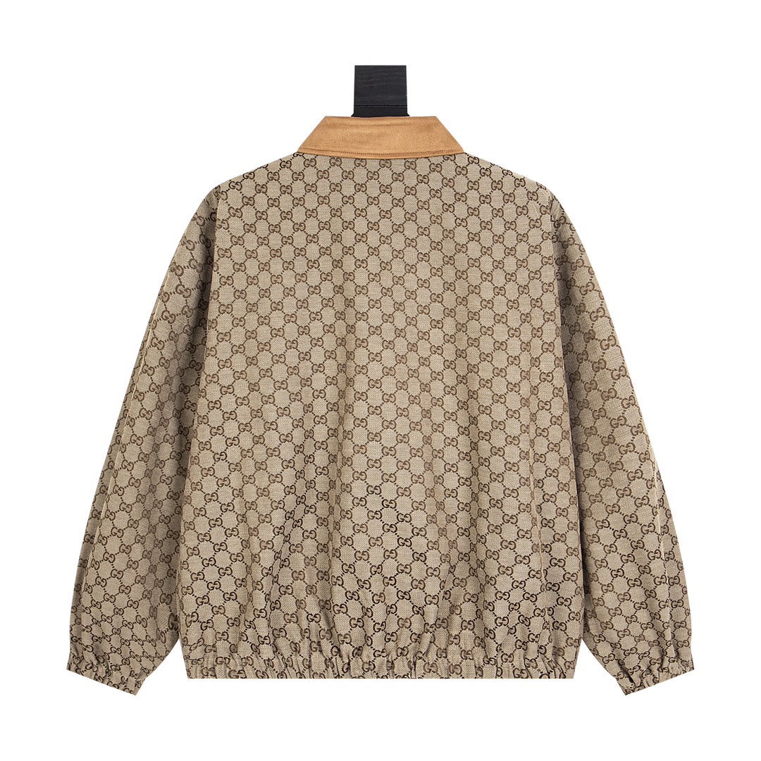 P235 GUCCi2021秋冬新款💥净色老花双面GG翻领夹克外套🔥对版开发双G提花面料 净色棉格面料 定染洗水鹿茸真皮 全套辅料开发 五金挂金电镀 防伪芯片 全身到位对花 版型完美还原 顶级品质 码数:46 48 50 52