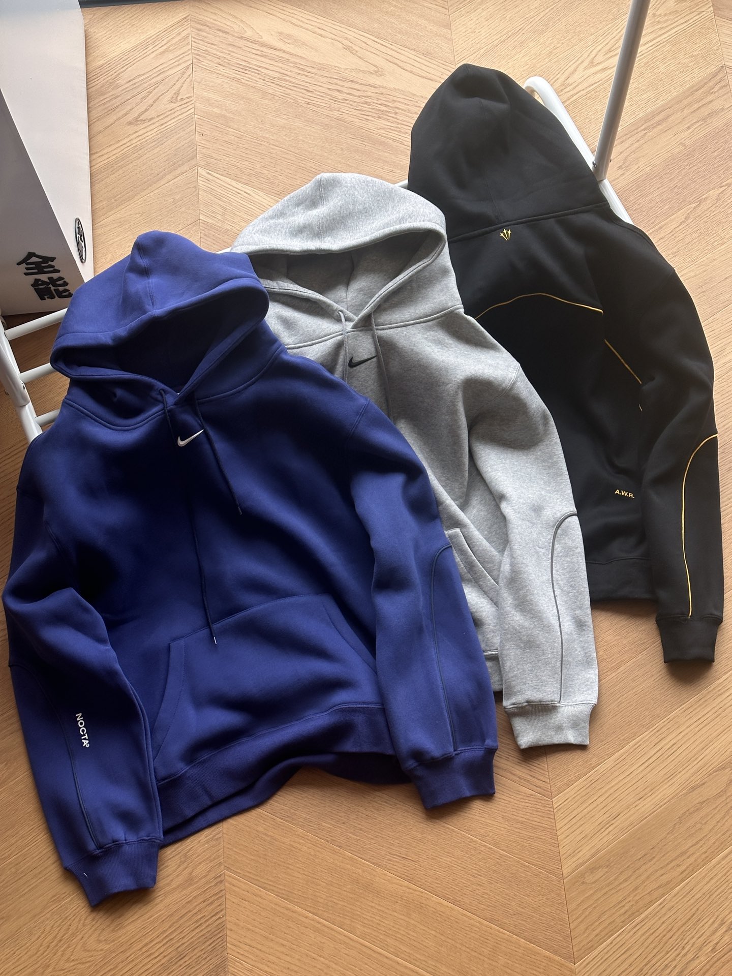 供 连帽卫衣💰170 🇷🇺Nike x Drake NOCTA系列 联名镶边起绒连帽卫衣🇷🇺男女同款 黑色黄标 黑色白标 蓝色 灰色 S~xl 🌘得物在售1400+,采用380克高克重加绒面料,立体硅胶印花,大身牙线反光工艺,对版对位,全网最高版本 🌘全套联名原版三标辅料齐全 尺码表:175 120 穿 S 合适 S:衣长65 胸围102 肩宽52 M:衣长67 胸围106 肩宽54 L:衣长69 胸围110 肩宽56 XL:衣长71 胸围114 肩宽58