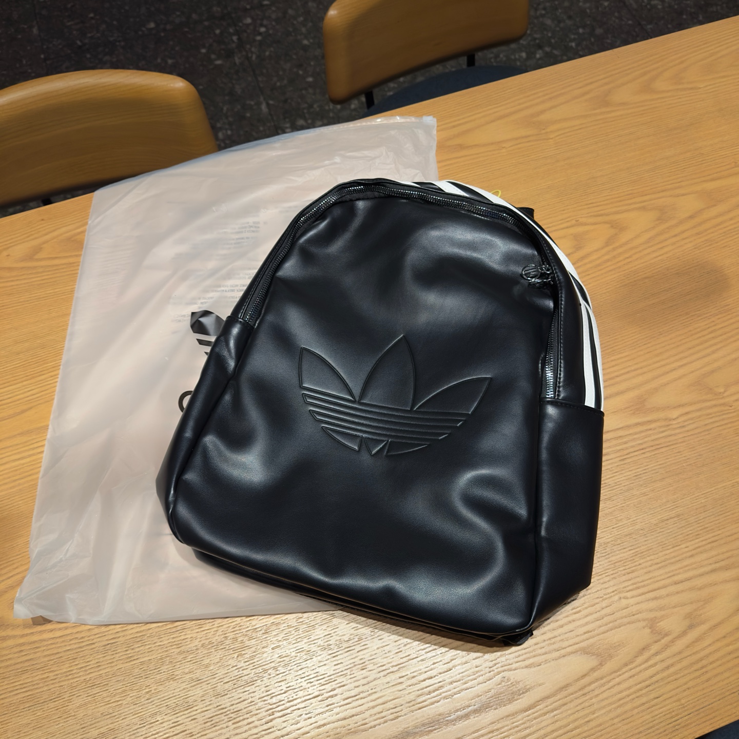 P75💰阿迪三叶草皮质双肩包,复古机车包显瘦帅气的很,大logo商务休闲可以装很多日常用品!尺寸:13*30*44