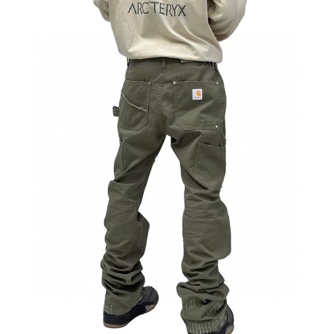 💰120 Carhart卡哈特 专柜品质高货实体质量绣标伐木裤重磅水洗做旧工装长裤情侣款 Color: 复古军绿 Size: M-XL M 腰围78 臀围108 裤长108 (cm) L 腰围79 臀围112 裤长109 (cm) XL 腰围80 臀围116 裤长110 (cm)