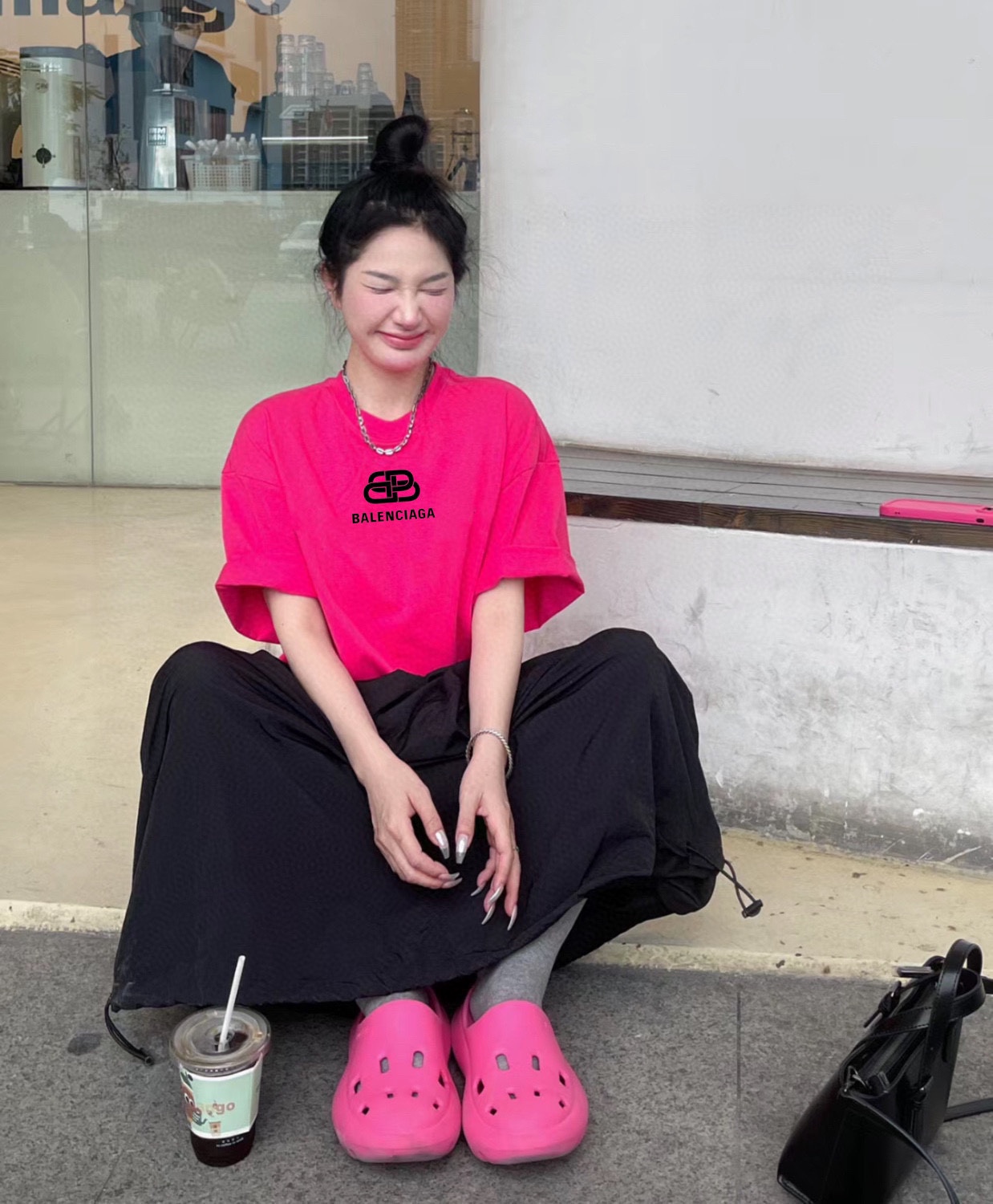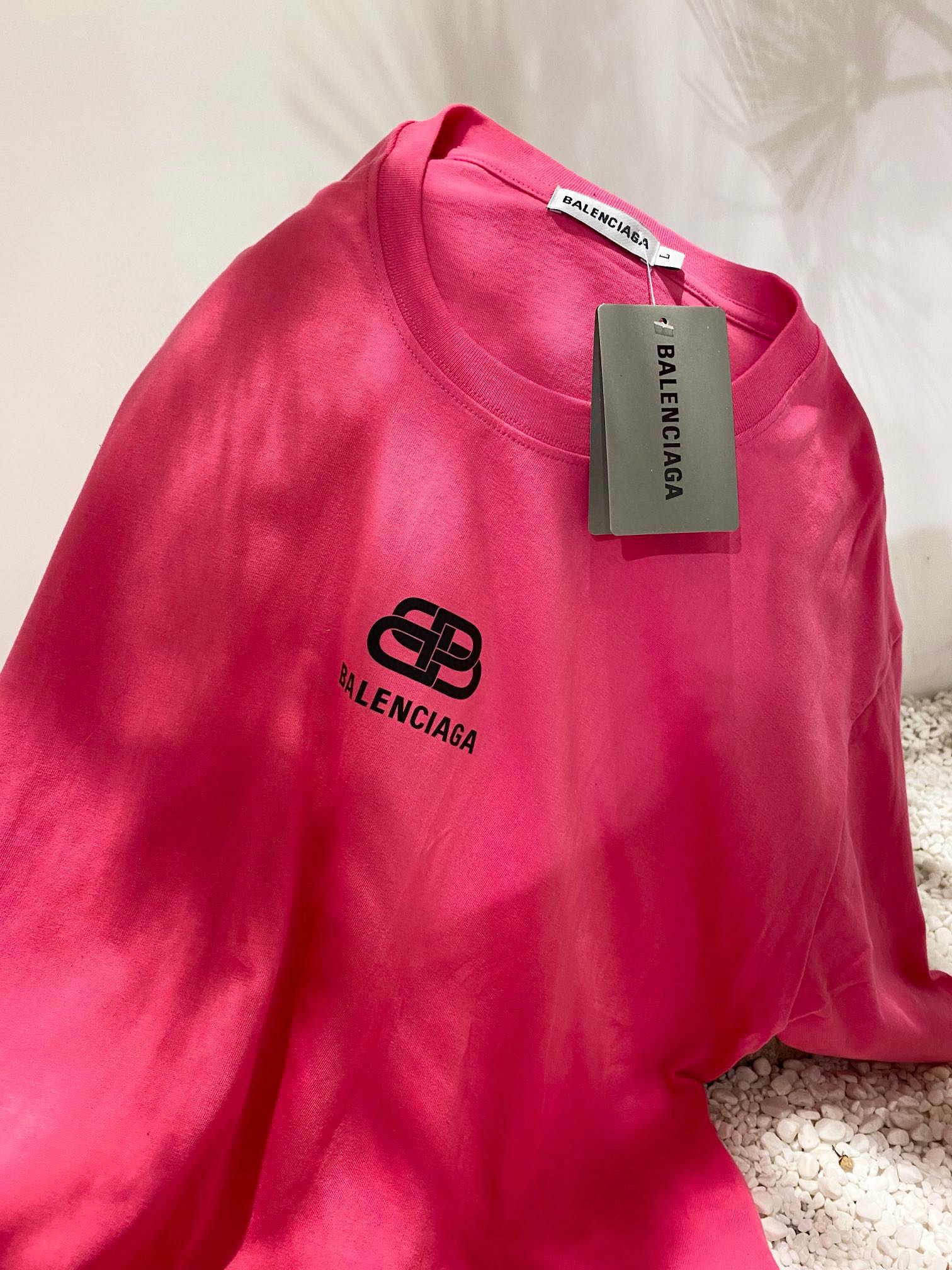 💰60 Balenciaga巴黎世家 高克重纯棉直筒锁扣印花T恤短袖情侣款 Color: 火龙果色 Size: M-XL M 肩宽49 胸围114 衣长70 (cm) L 肩宽50 胸围118 衣长71 (cm) XL 肩宽51 胸围122 衣长72 (cm)