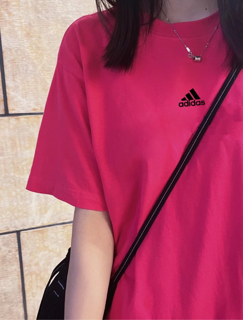 💰60 Adidas阿迪达斯 高克重火龙果色纯棉直筒印花T恤短袖情侣款 Color: 火龙果色 Size: M-XL M 肩宽49 胸围114 衣长70 (cm) L 肩宽50 胸围118 衣长71 (cm) XL 肩宽51 胸围122 衣长72 (cm)