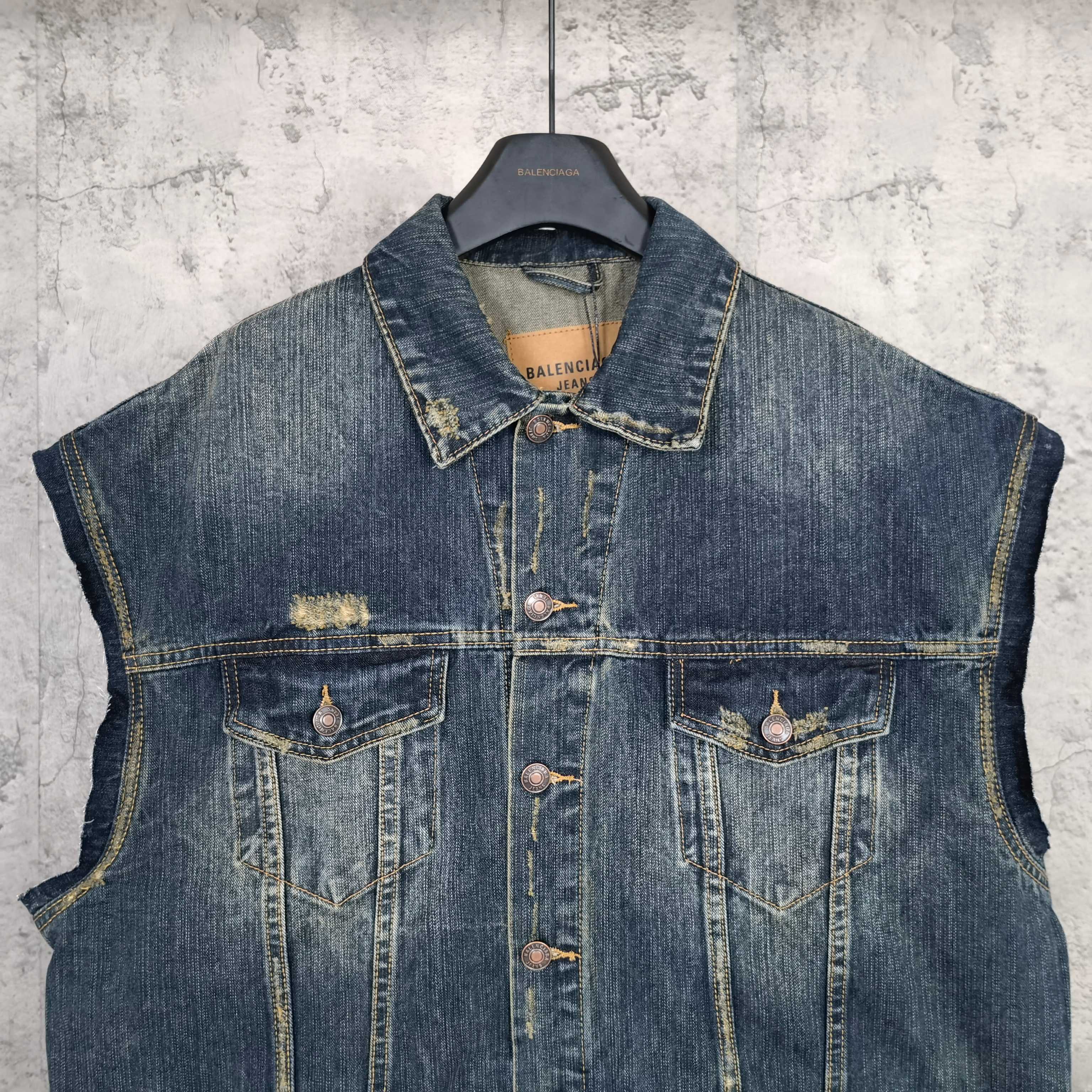 🅿️185 BLCG BAGGY DEIM JACKET 25FALL 磨损做旧破洞超大OS宽松版型牛仔马甲夹克外套 颜色: 深蓝色 码数: 1-2-3-4