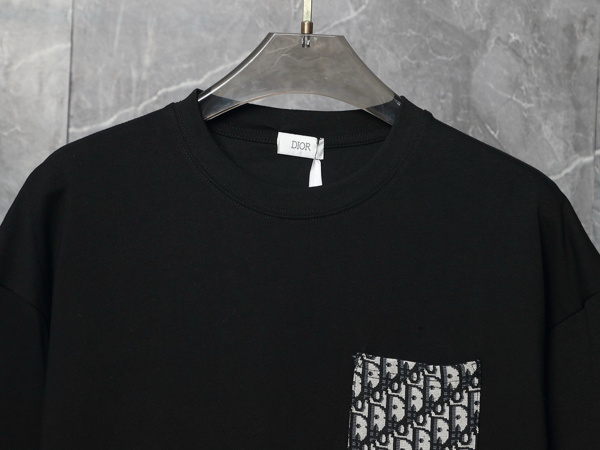P75 款号:SA35 Dior 迪奥胸前经典提花贴布口袋 后背条纹印花短袖T恤 面料:采用320G 100%纯棉双纱面料 同缸定染特种加粗32支双股1X1螺纹克纯棉面料。 码数:S M L XL 颜色:黑色