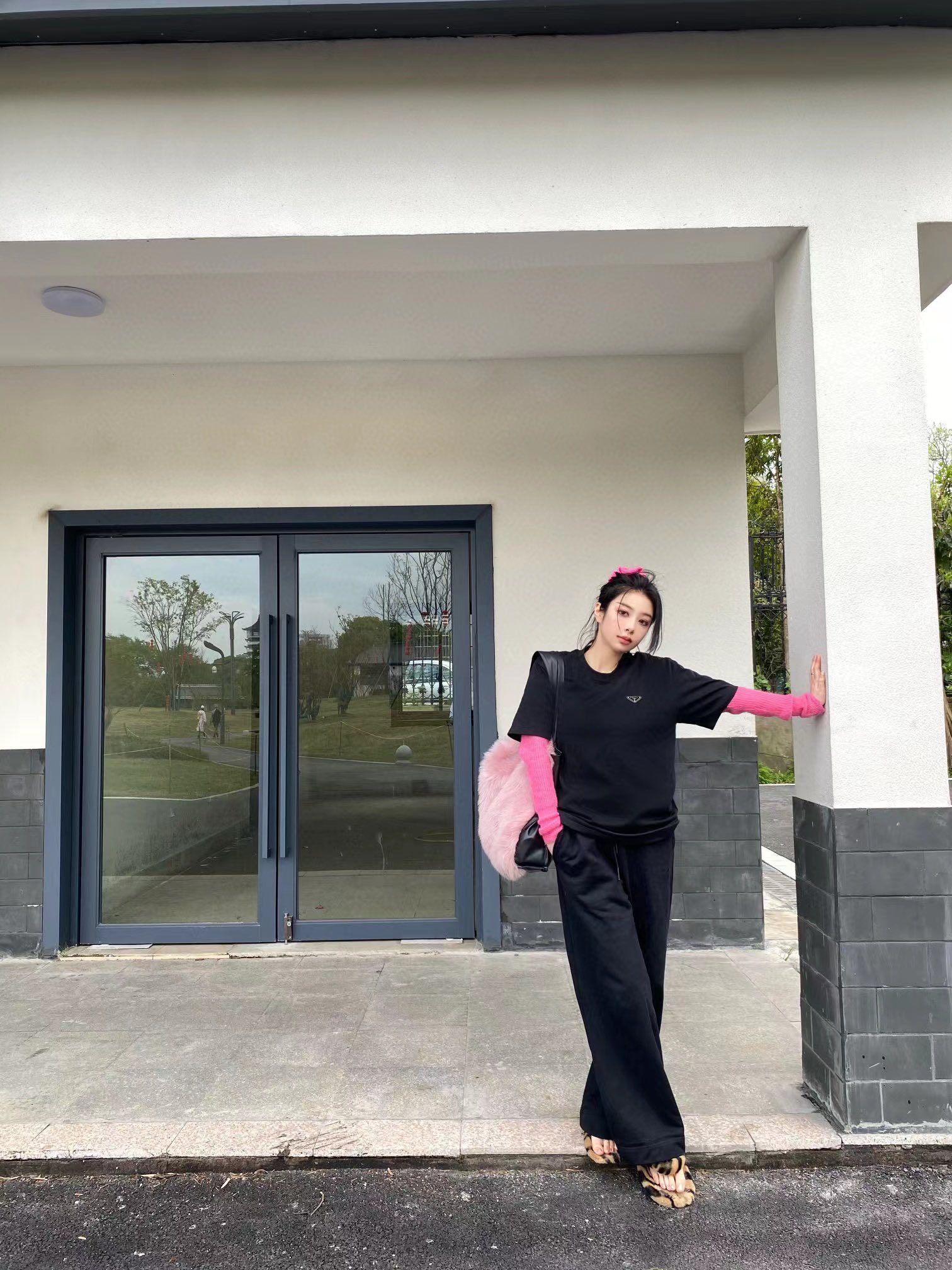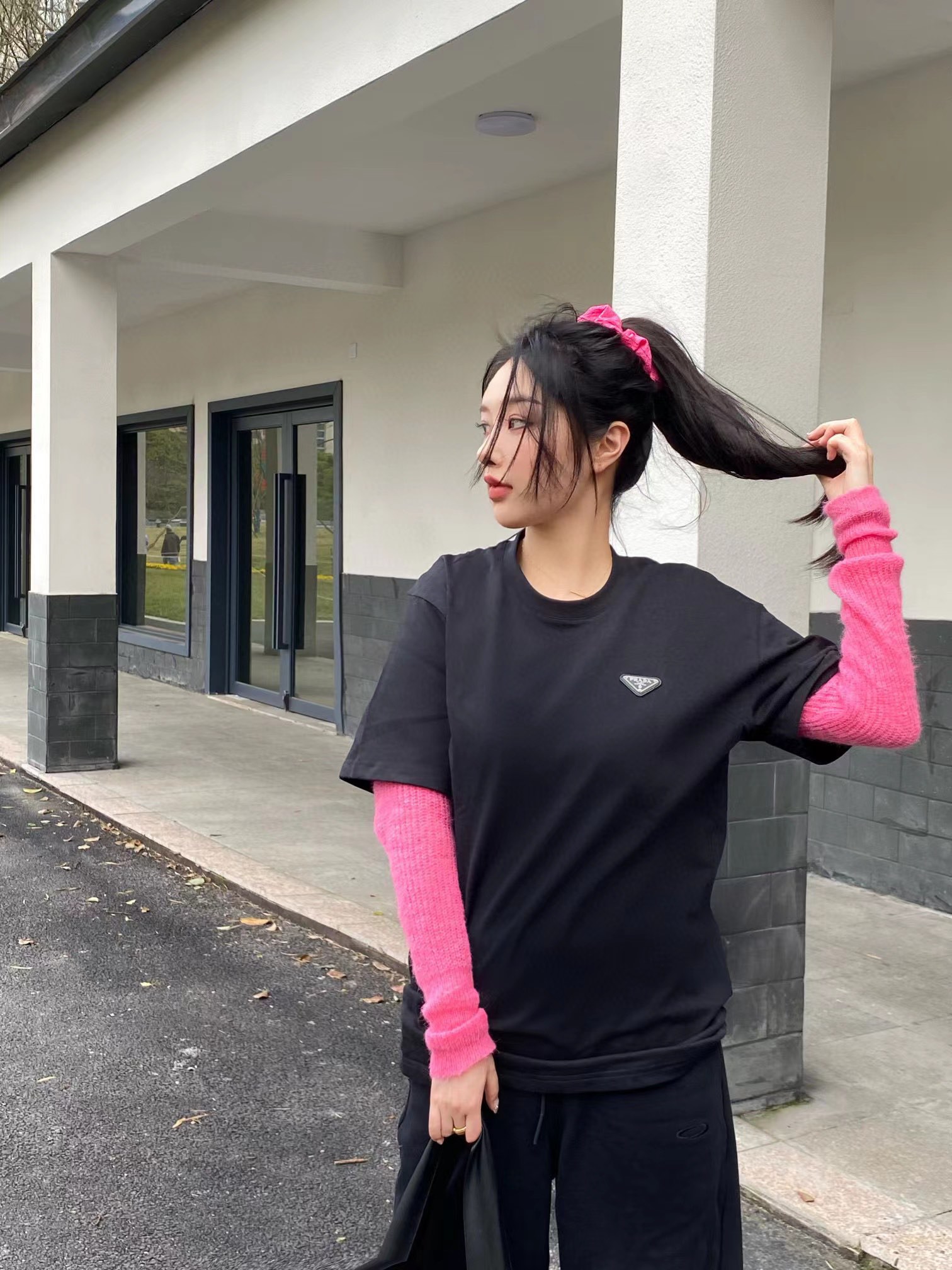 Prada/普拉达 经典铁牌徽标短袖T恤 上身效果#