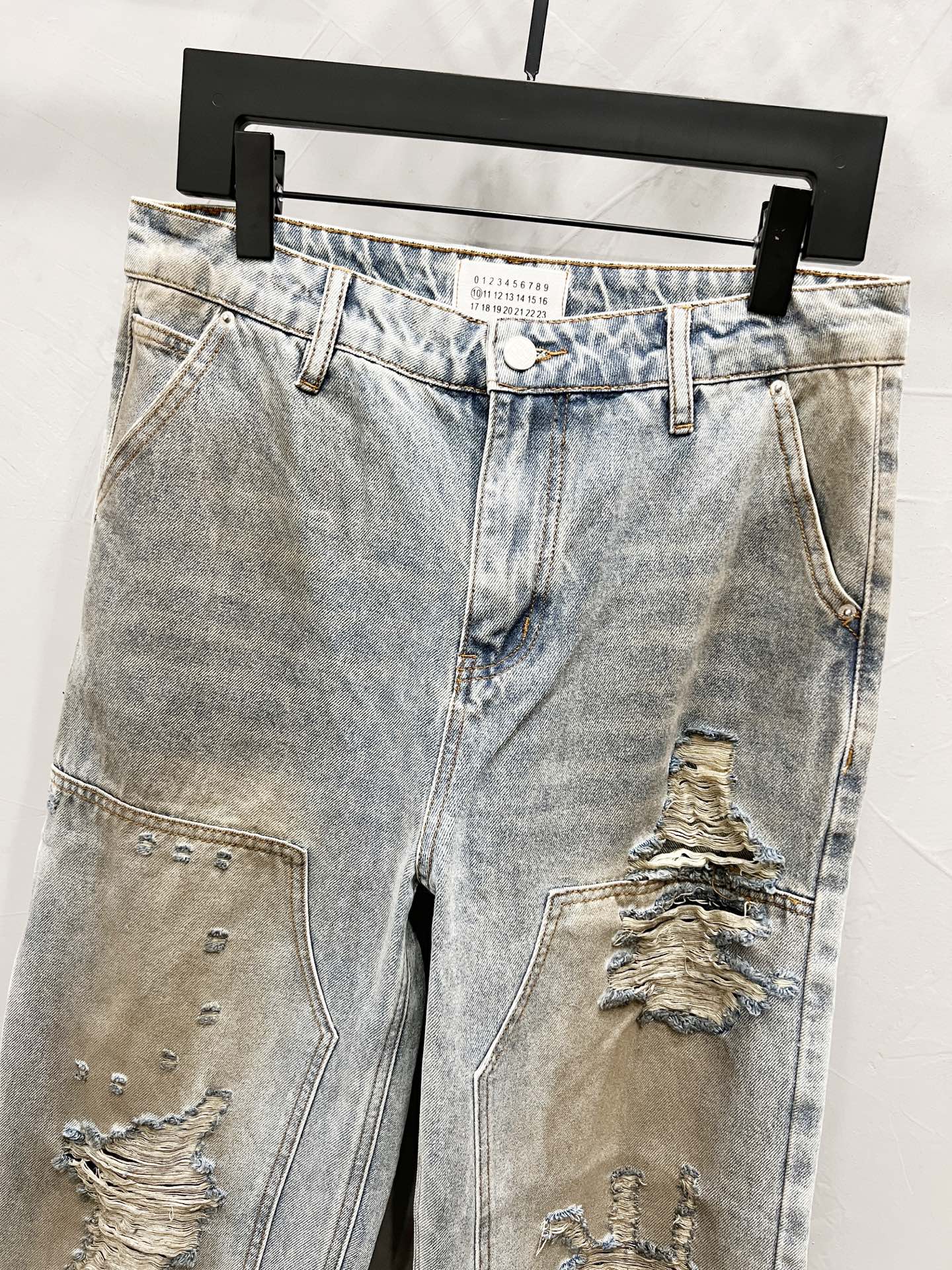 P135 款号【M1213】 MM6 Maison Margiela SS25 中腰舒适隐藏式拉链做旧效果牛仔裤 男女款 顶级天花板品质 不同水洗质感的款式,对腿细腿粗人士十分友好,直筒修身的版型十分修饰腿型 永不过时的适中长度,搭配起来轻松随意,各种风格的造型基础,衣橱中的必备款! 面料硬挺的同时又做到了上身柔软而不失质感的效果, 洗水工艺更是做到了极致,人手必备款!!! 水洗麦 吊牌 裤标 三标齐全 Color:蓝 Size:30、32、34、36