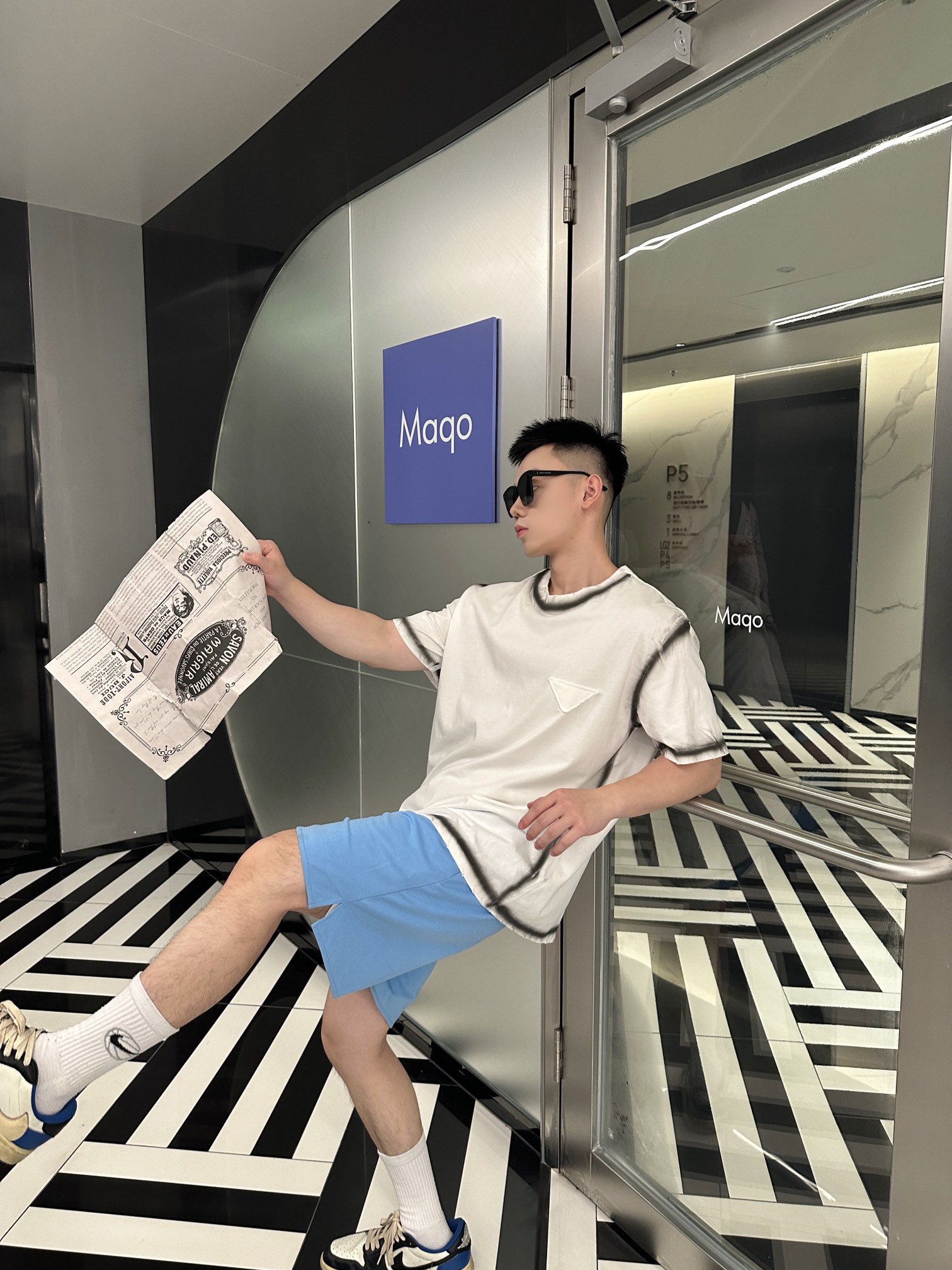 Prada/普拉达 水洗贴布三角标短袖T恤 上身效果#