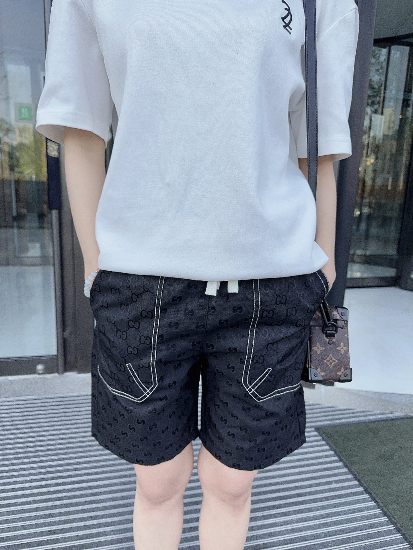GUCCI/古驰 GG满印老花刺绣短裤 上身效果#