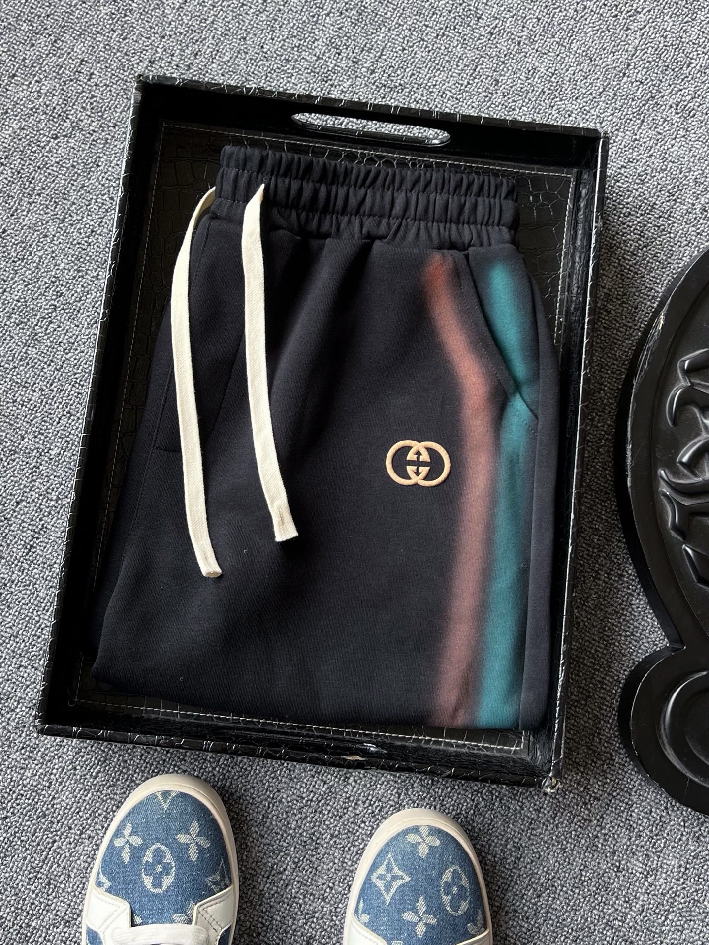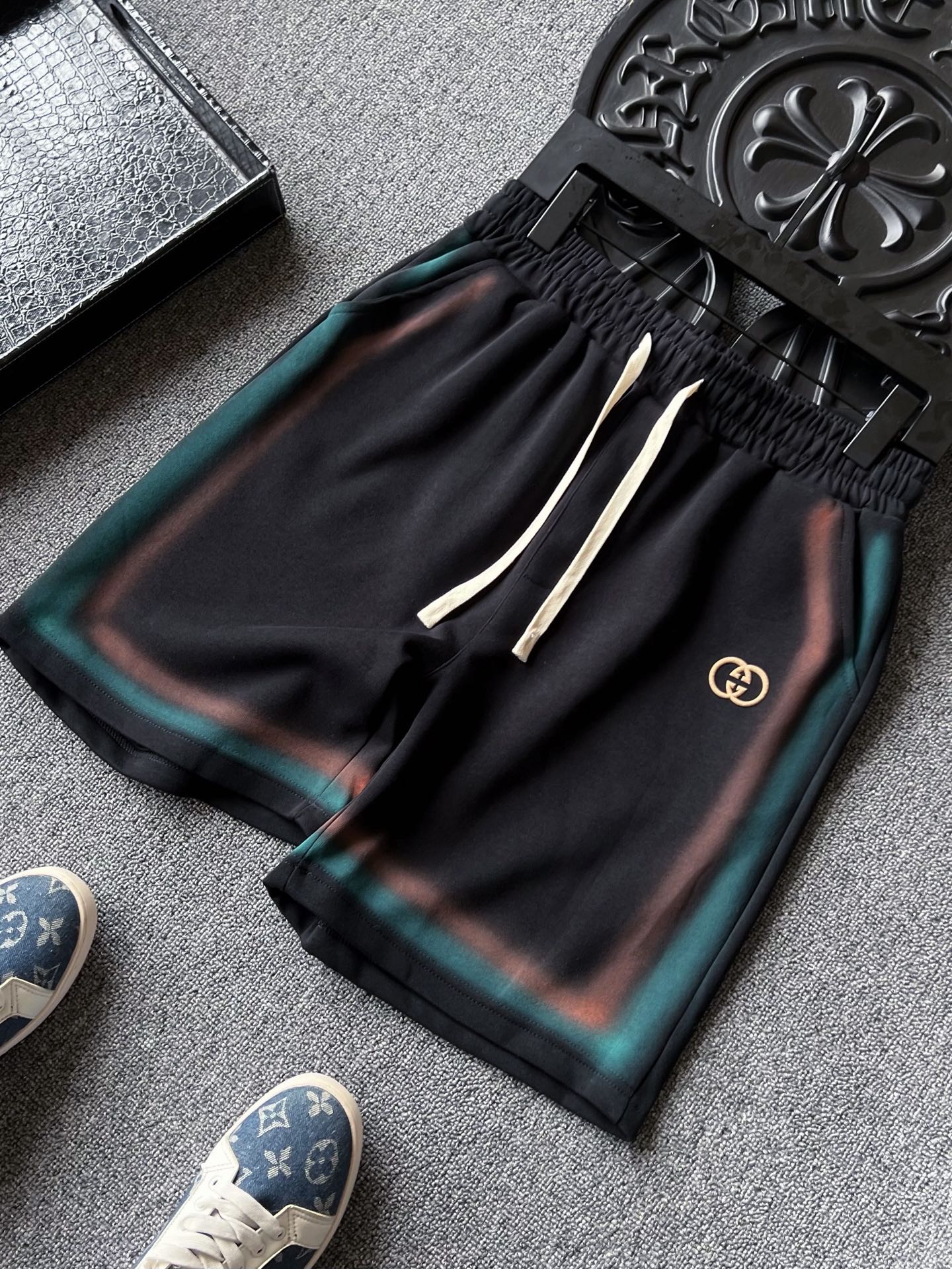 💰95 专柜顶级新品! 💥人气爆款!Gucci/古驰双G专柜新品彩虹条扎染长绒棉短裤!恒隆在售万元级,款号:9999 古驰家今年最新新疆长绒棉面料!整条摸起来柔软细腻,高克重充分保证上身贴身舒适性以及垂感度!拼接边缘处全部做了涂鸦线条定位扎染工艺,特别好看! 细节细节再细节!Gucci家专柜新品长绒棉短裤!艺术品级顶尖设计图纸,双色涂鸦线条扎染工艺配合黑色大身组合特别好看!裤前3D立体浮雕双G进口软硅胶小标!表层浮雕GG纳米激光雕刻,十分精致!内里全包边精湛做工,简约精致神裤! 全球首发新品!国内外专柜热销爆款情侣款五分裤!男女同款在售,情侣上身特别好看!日常出行健身运动以及休闲娱乐场合都能做到精致百搭!强烈推荐入手! 尺码:M-3XL(情侣款)