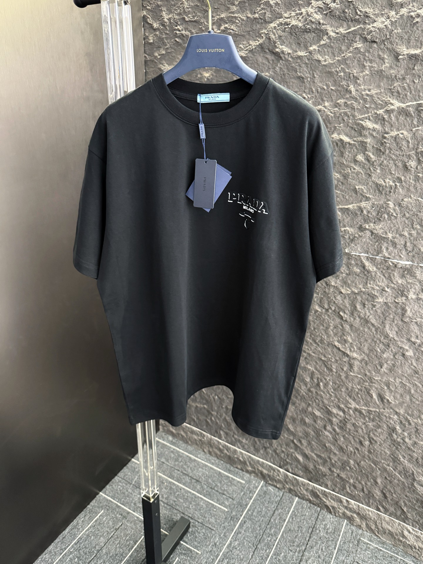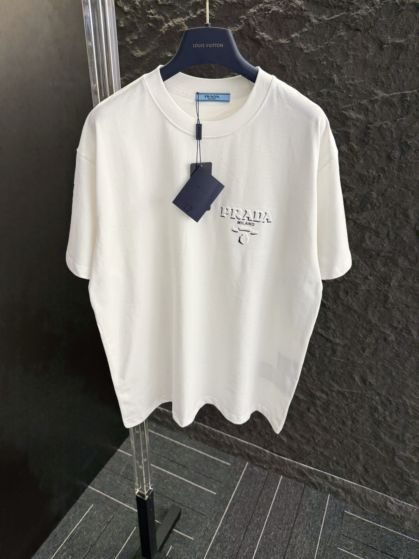 批80 款号P25 Prada新款凹凸钢印短袖T恤 定制280克全棉双纱硬挺面料 布面干净 布纹清晰 手感非常细腻扎实 更加力挺 舒适透气不易变形不易褶皱 1×1索罗娜螺纹 面料螺纹同缸定染无色差 不易变形 全套定制商标、吊牌、洗水唛 市面最高版 Os落肩宽松版型 春夏最新专柜同步 时尚个性 男女同款 超级百搭 尺码:S M L XL 颜色:黑色 白色