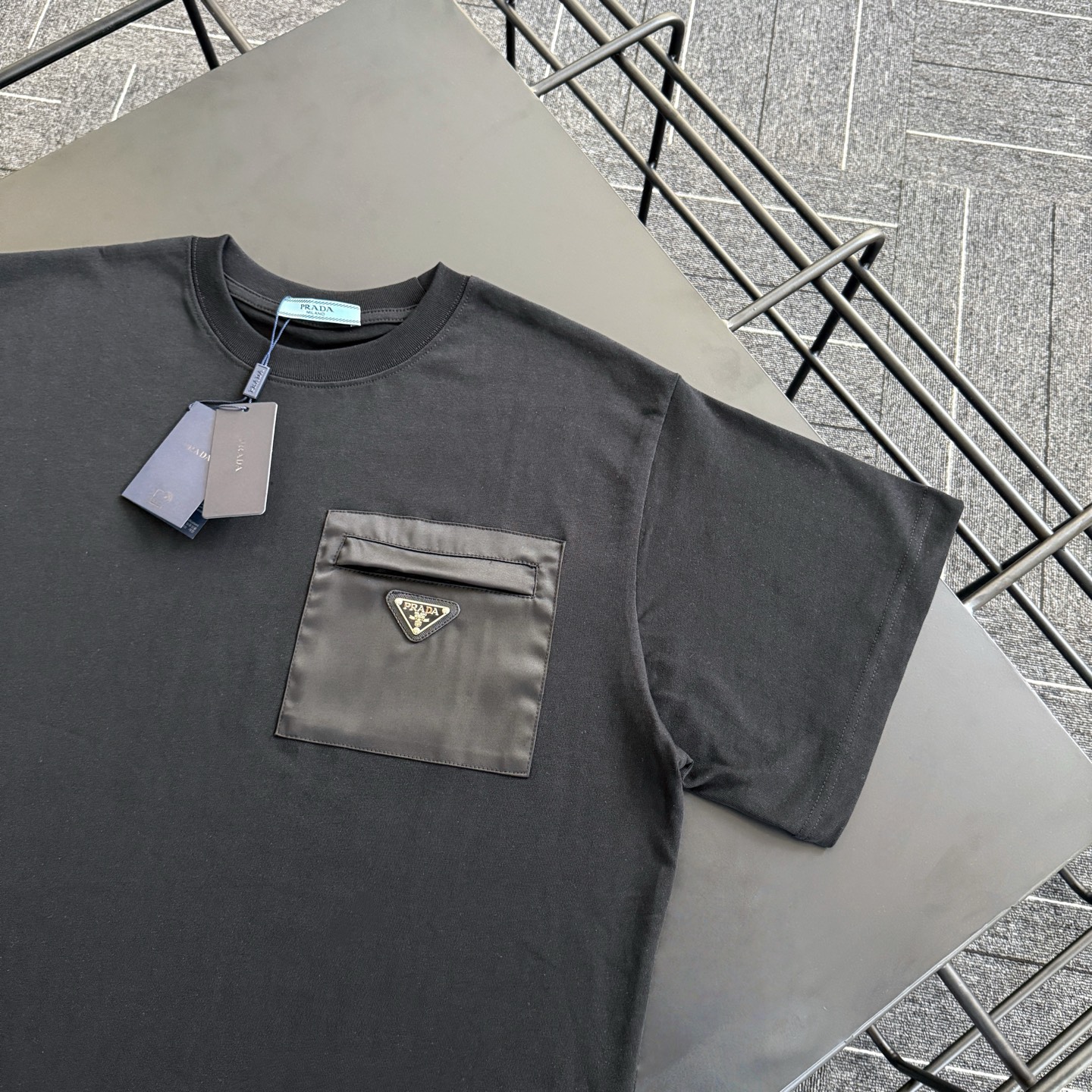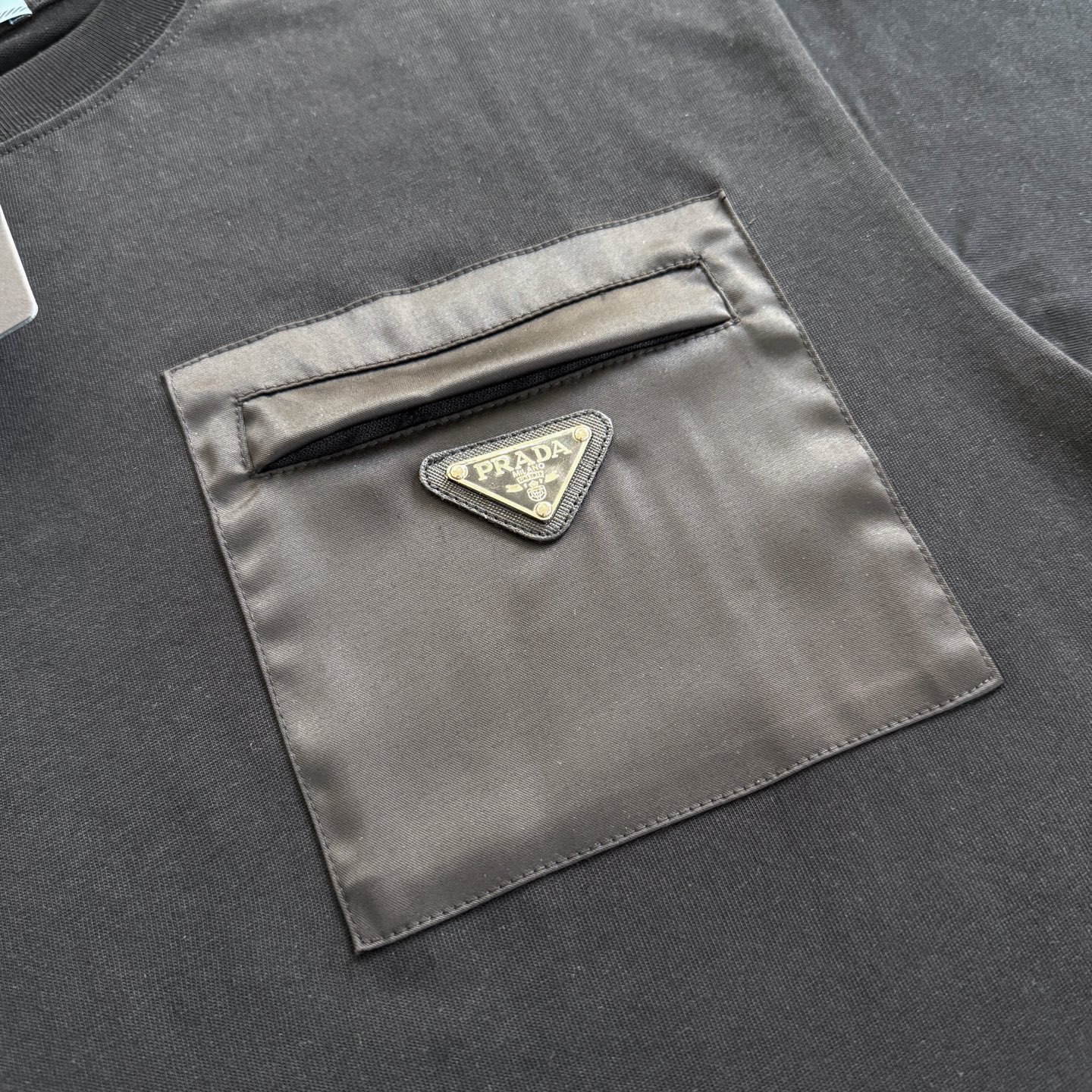 批85 款号P21 Prada工装拉链口袋三角标短袖T恤 市面高版‼️定制280克全棉双纱硬挺面料 布面干净 布纹清晰 手感非常细腻扎实 更加力挺 舒适透气不易变形不易褶皱 1×1索罗娜螺纹 面料螺纹同缸定染无色差 不易变形 全套定制商标、吊牌、洗水唛 Os落肩宽松版型 春夏最新专柜同步 时尚个性 男女同款 超级百搭 尺码:S M L XL 颜色:黑色