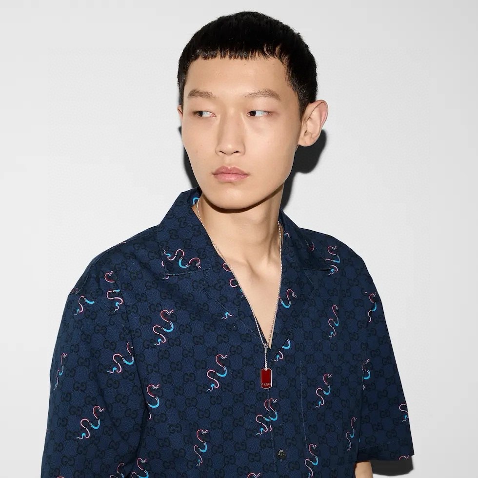 Gucc/古驰 蛇年限定蛇形印花衬衫短袖 上身效果#