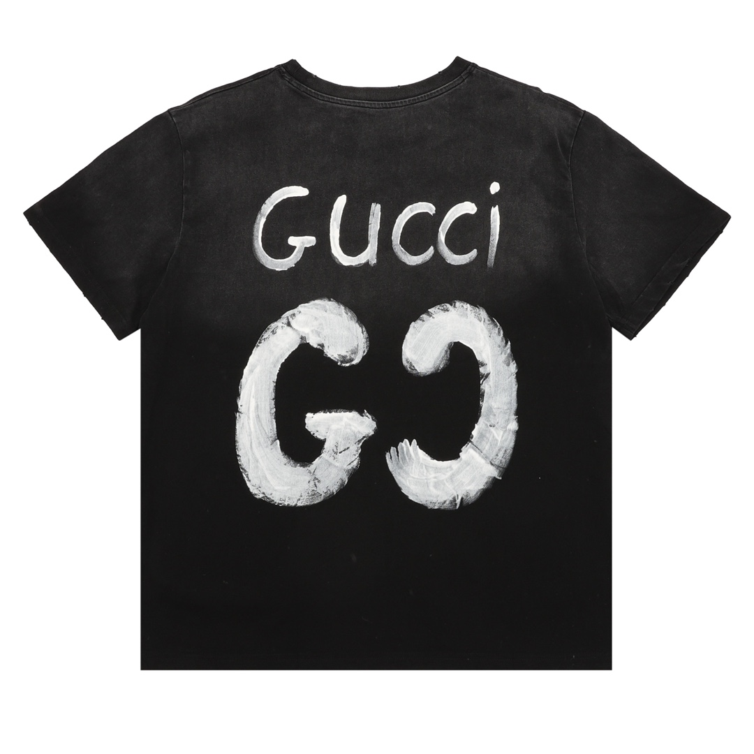 💰100 GUCCI/古驰 水洗草写字母印花圆领T恤 size:S-L