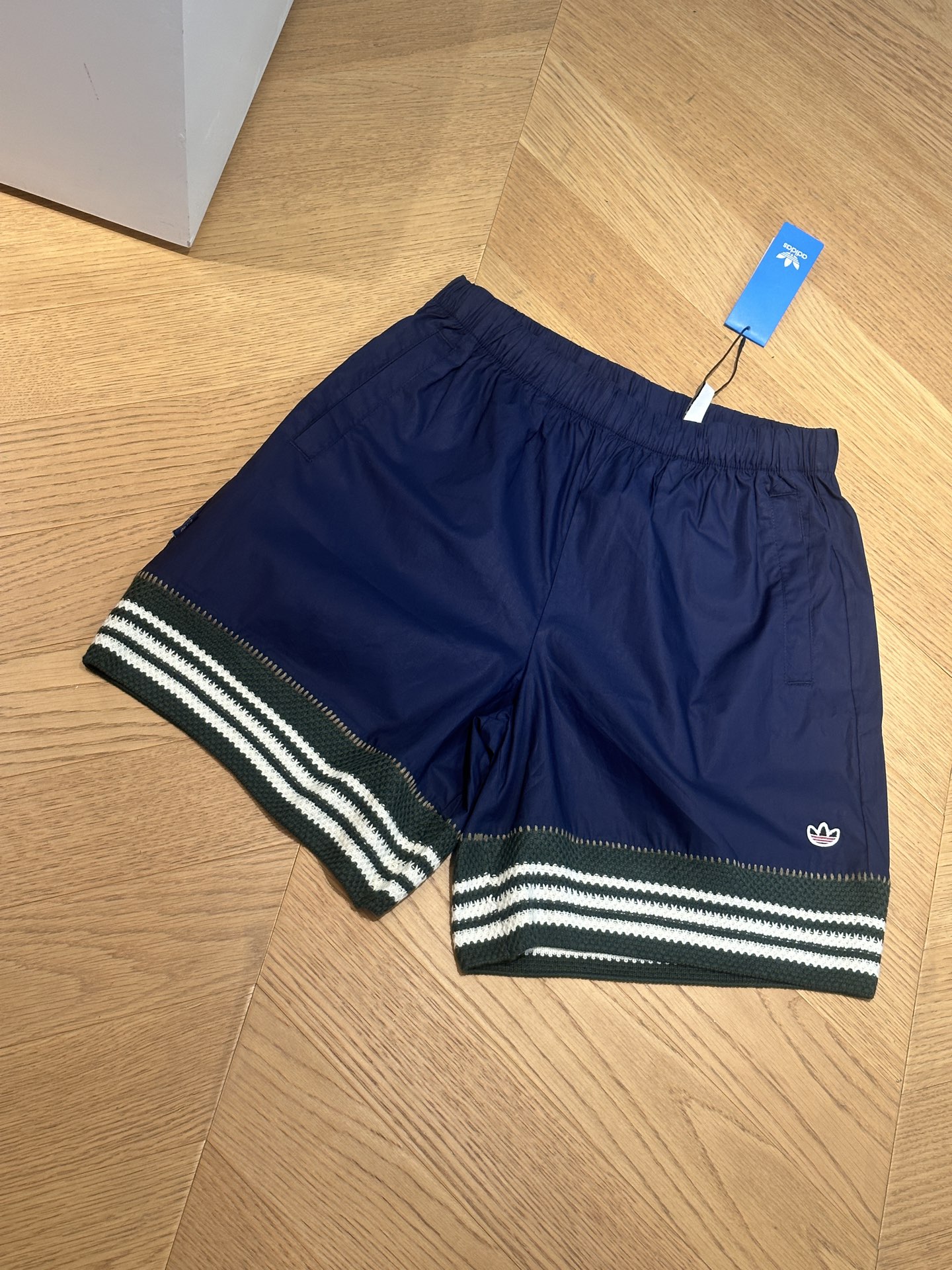 供💰115 🇷🇺adidas originals x Clot 联名款 Gender Neutral by Edison Chen 民族风拼接 百搭休闲短裤🇷🇺男女同款 夜靛蓝 S~xl 🌘今年adi和clot联名杀疯了,原版夜靛蓝梭织面料,下摆民族风针织拼接,民族风抽绳,全部一比一对版对位 尺码表:175 120穿s合适 S:腰围拉伸后97 裤长44.5 臀围104 M:腰围拉伸后101 裤长46 臀围108 L:腰围拉伸后105 裤长47.5 臀围112 xl:腰围拉伸后109 裤长49 臀围116