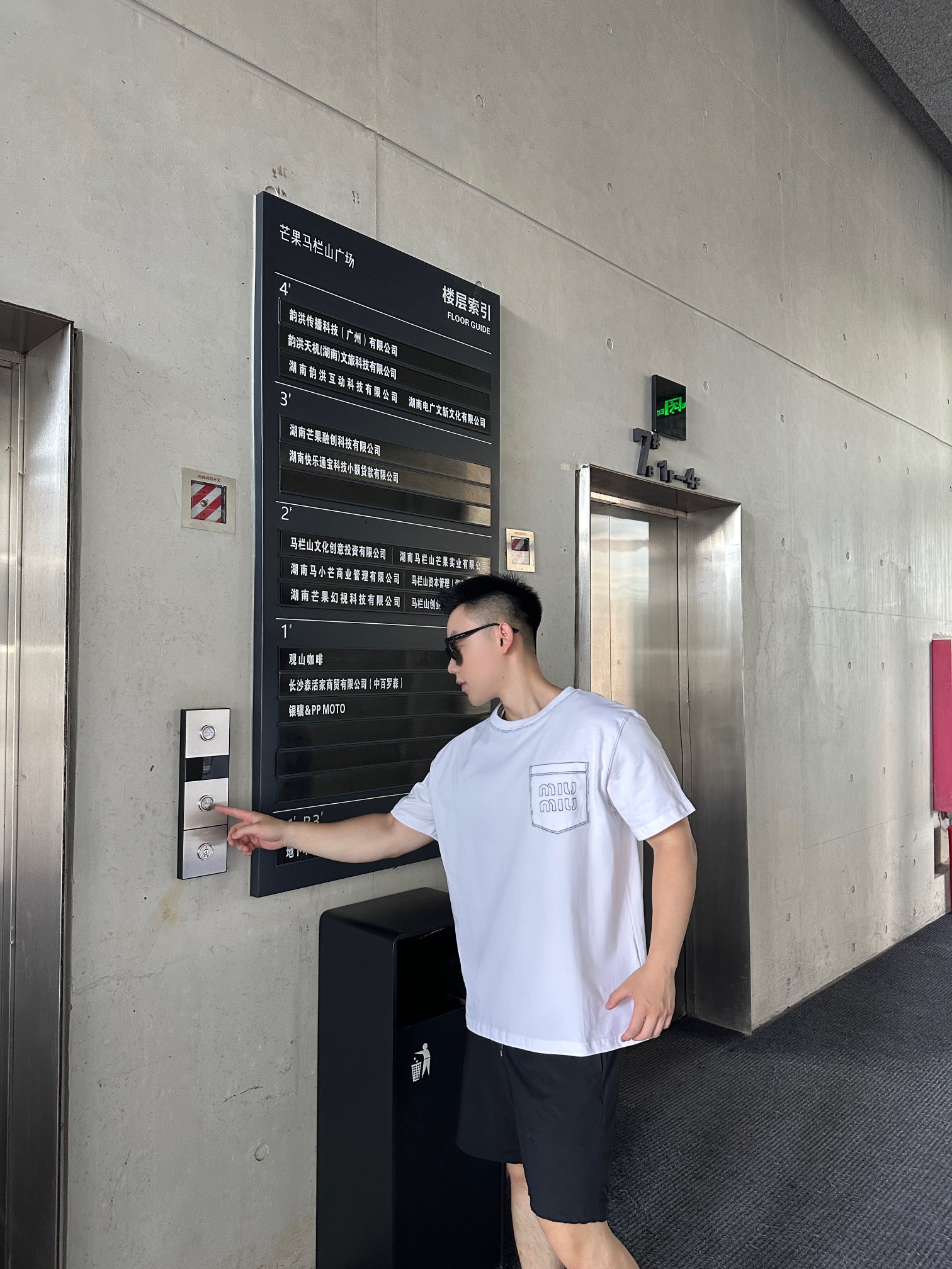 MIU MIU/缪缪 明线刺绣徽标短袖T恤 上身效果#