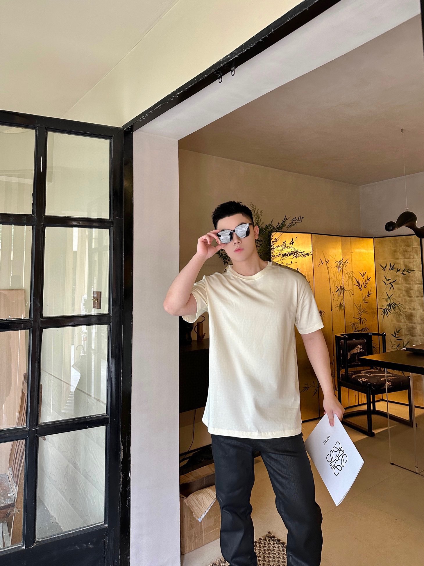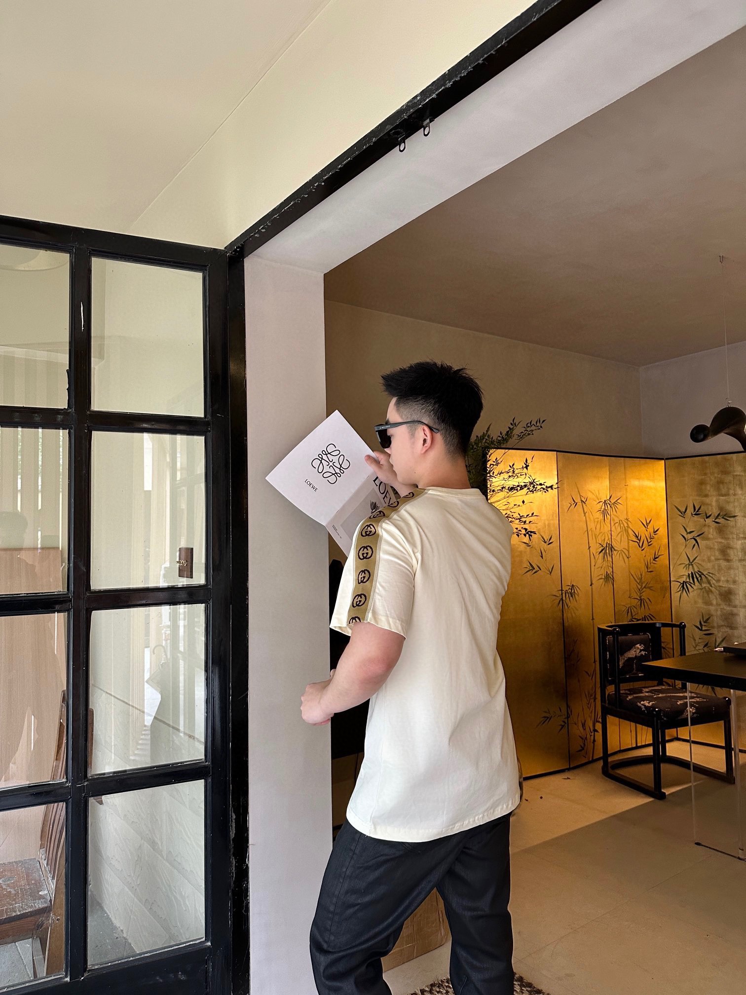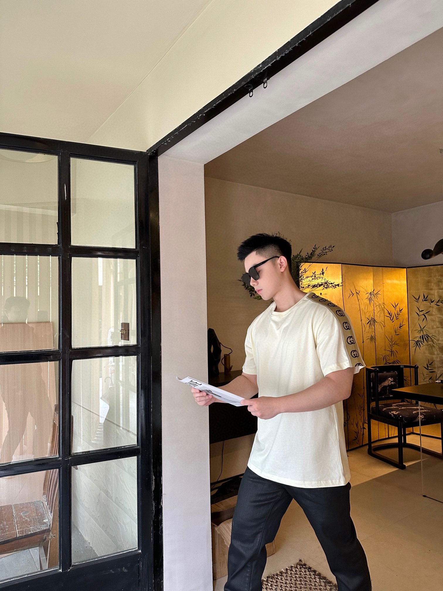 GUCCI/古驰 侧边织带圆领T恤 上身效果#