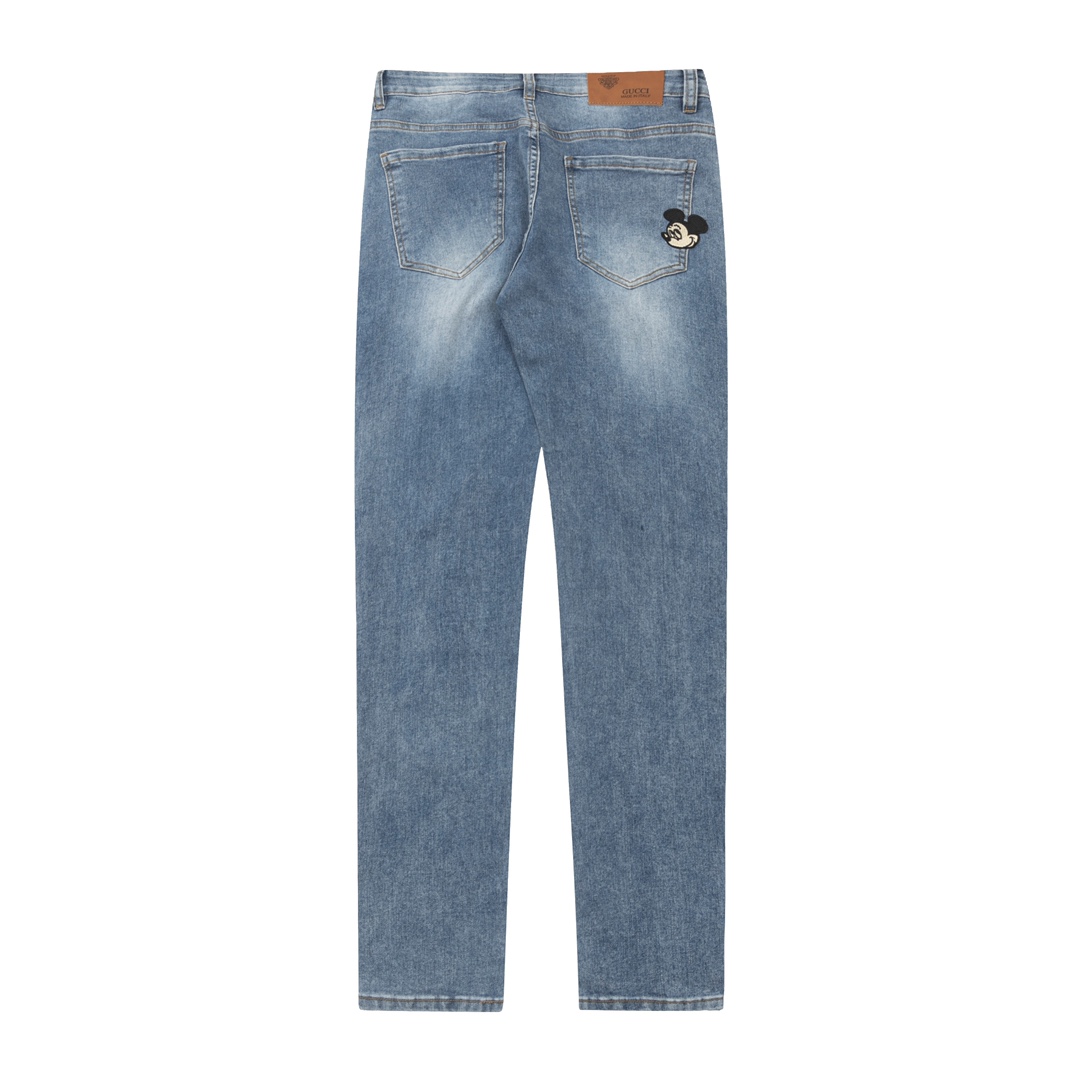 p135💰 款号:【K809】古驰联名迪士尼米奇2023最新品,专柜同步有售,原单狠货,水洗休闲牛仔裤,进口原版水洗弹力面料,舒适有弹性,原版五金辅料装饰logo,版型超正,档次极高,专柜品质,上身时尚有型 辅料全套一比一开模定制 Color:蓝色 Size:S-XXL(28.40.32.34.36)