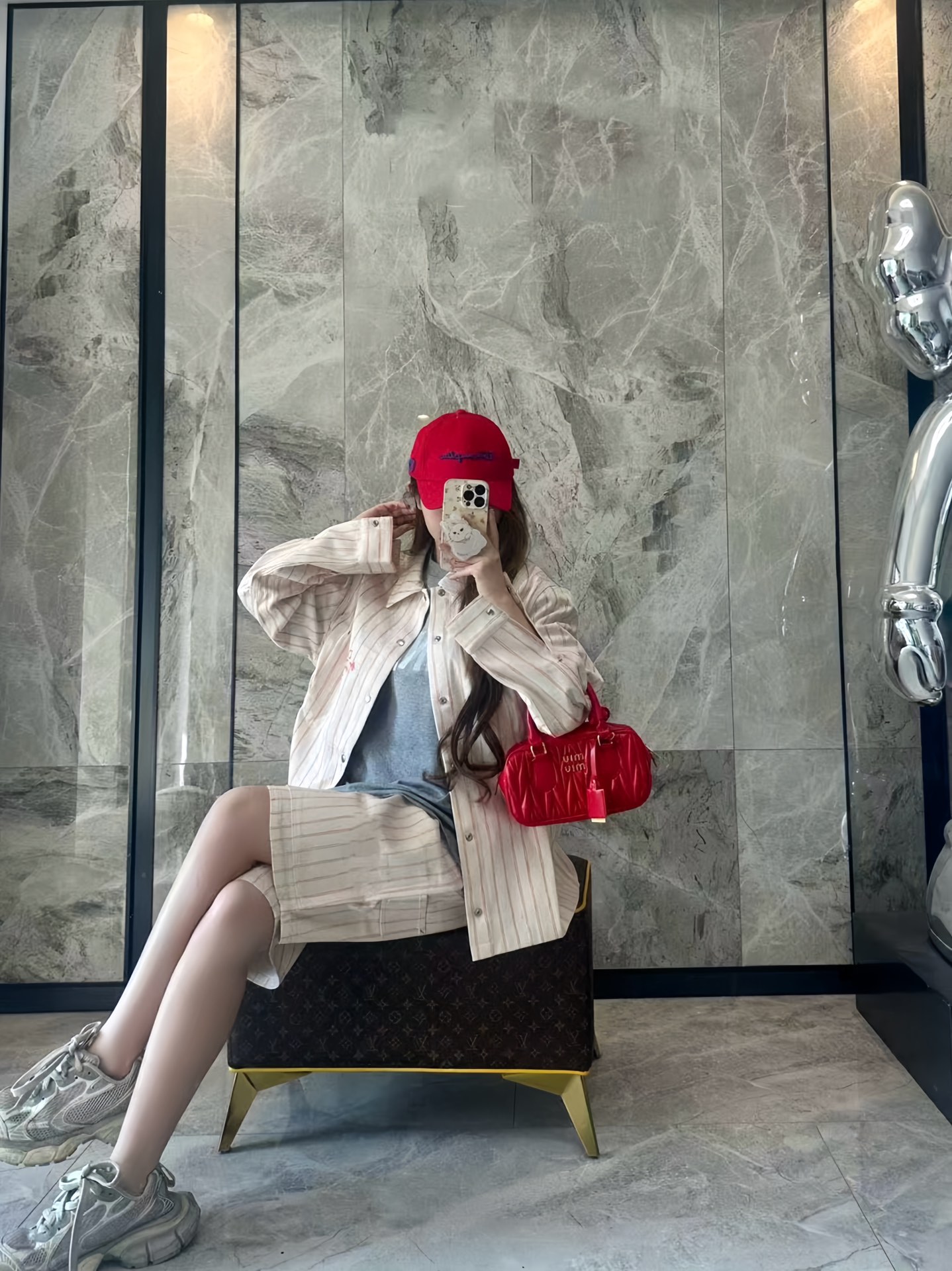 Dior/迪奥 25ss 口袋条纹Dio字母短裤-红线 上身效果#