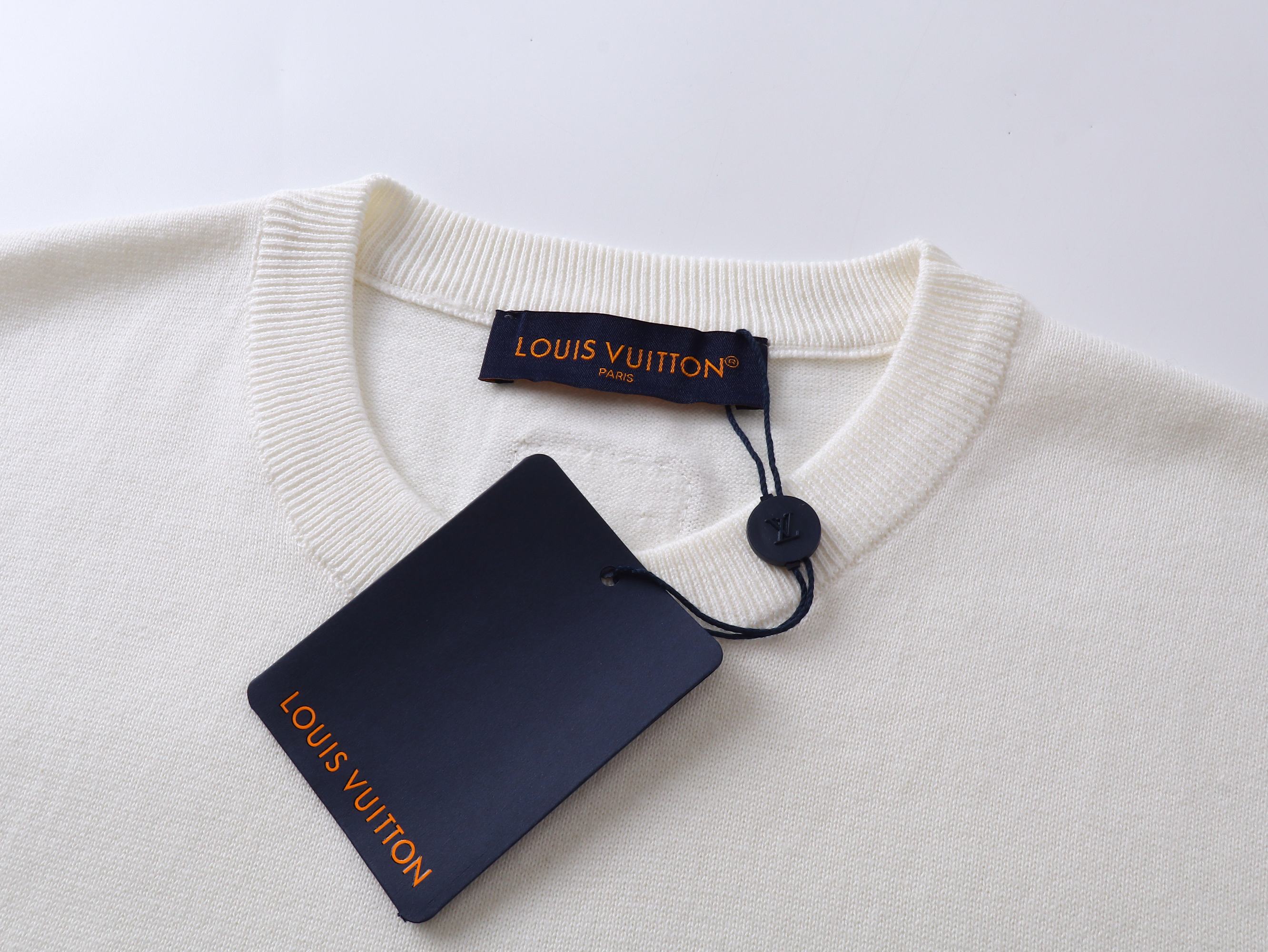 正确版高品质 P105 1V/2025ss新款浮雕压花皮章针织短袖 本款短袖圆领衫取材柔软棉质针织,为正面 VVN 皮革贴饰压印 1V Vers 标识,娓娓道出品牌皮具系列的悠久传承。后部小号 1V 皮革贴饰完善细节。 男女同款 码数: XS S M L