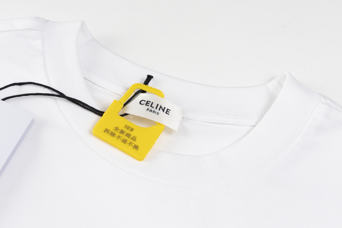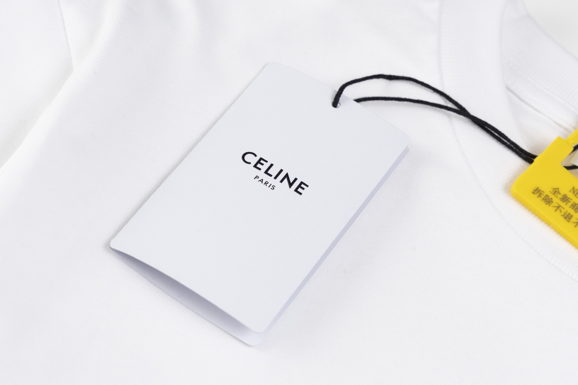 P95礼盒🎁 赛琳|25ss新款 字母印花圆领T恤 码数XS-S-M-L 男女同款 现货发售 精选丝光棉面料经精纺制成高织纱,再经烧毛、丝光的报告特殊工艺加工,100%棉。CELINE PARIS TRIOMPHE印花,宽松版型,圆领落肩,衣领饰有罗纹饰边。