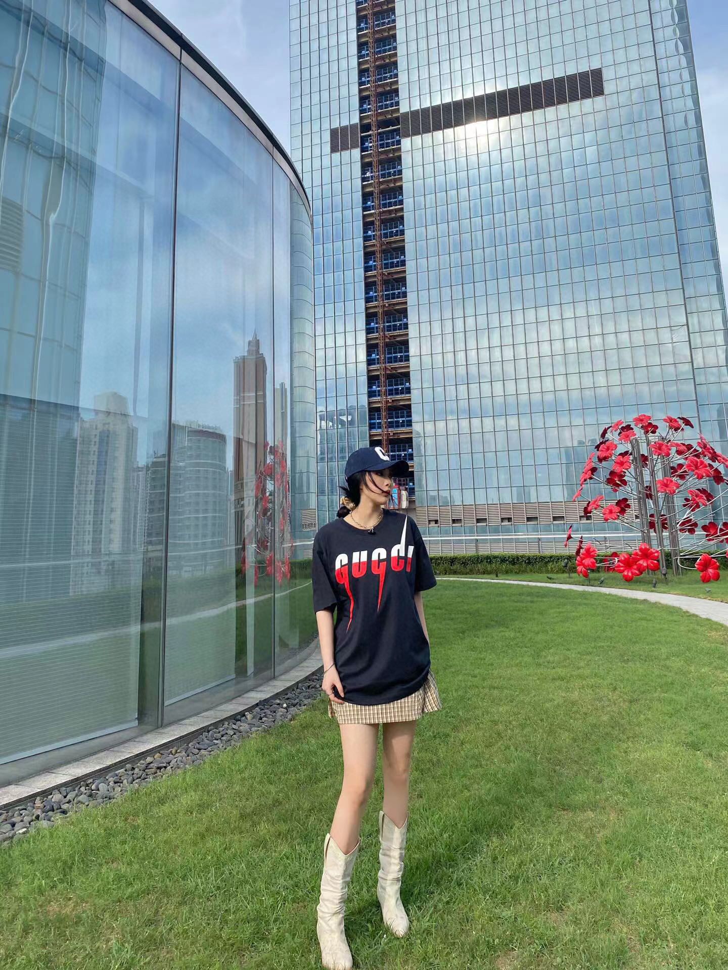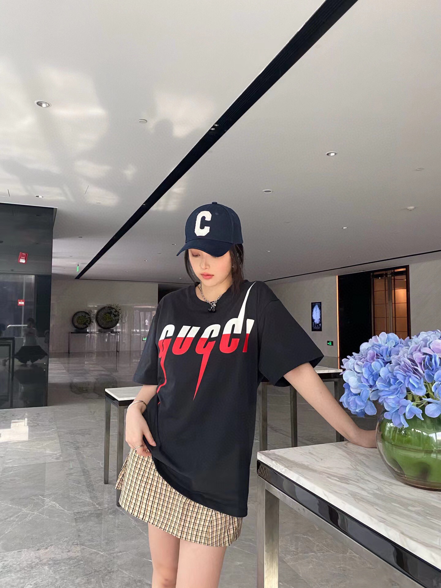 Gucci古驰闪电LOGO短袖T恤 上身效果#