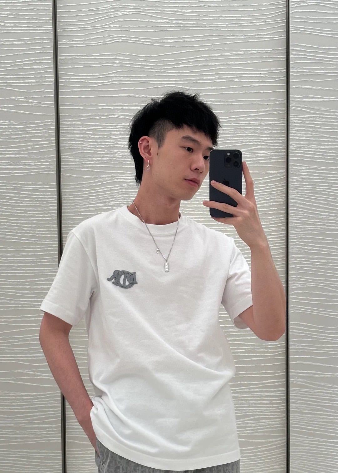 DIOR迪奥CD 四色绣花章仔字母短袖T恤 上身效果#