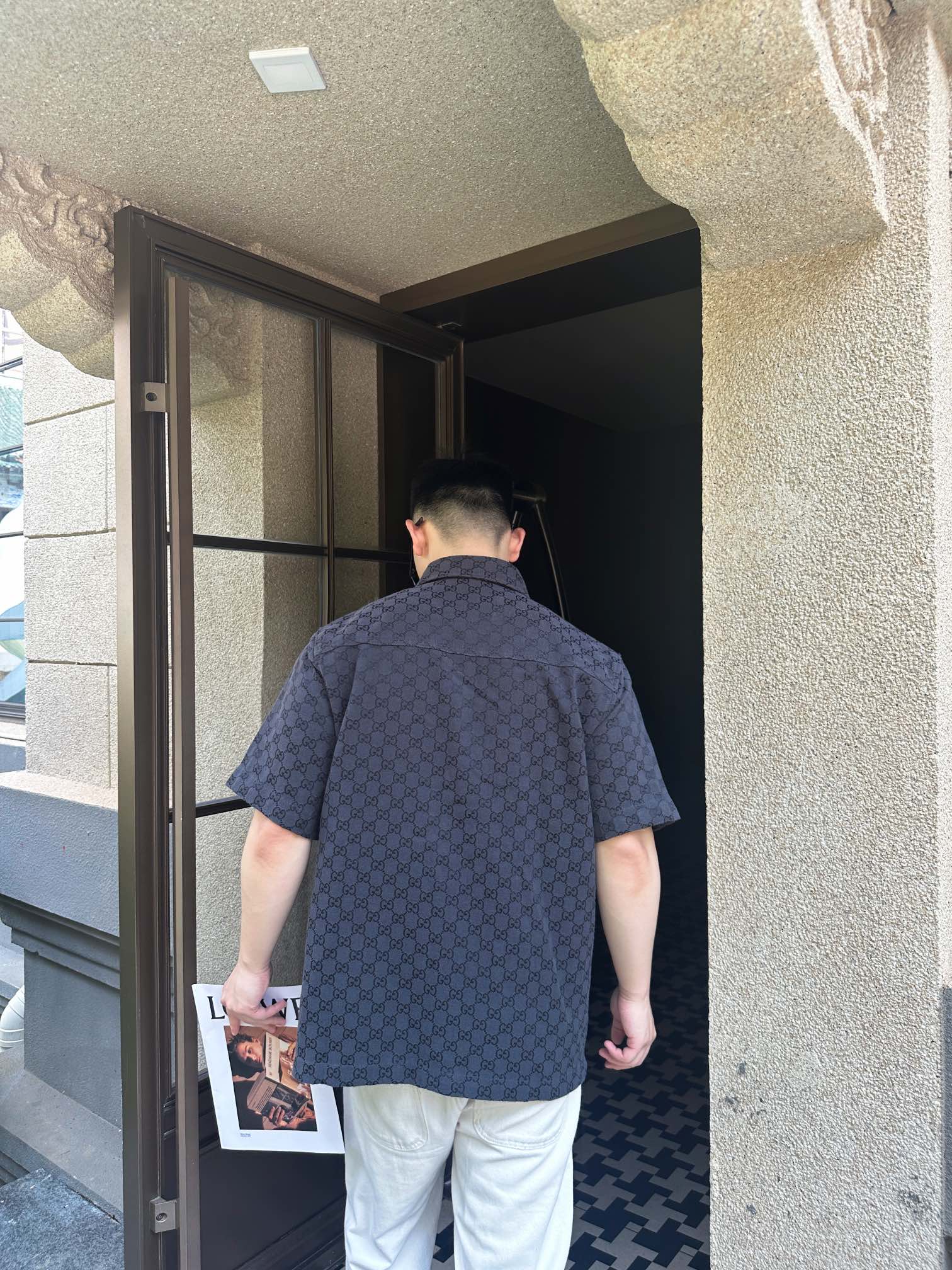 GUCCI/古驰 翻领满印短袖衬衣外套 上身效果#