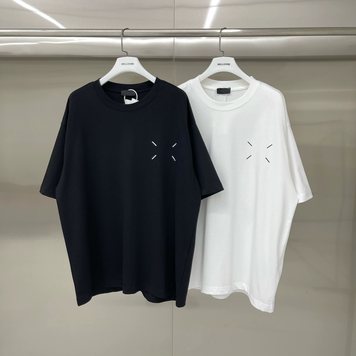 新款💰75 款号: W248# WE11DONE 日历印花 宽松圆领短袖T恤男女情侣款 面料:280g双纱精梳紧密赛络纺重磅纯棉 工艺:走线均是全身三线缝制,后领织带包边延伸到肩部加固,细节井口与肩膀处的衔接处打了倒针,更加无缝衔接。印花采用高端工艺不易开裂,区别市面普通版本 辅料:吊牌洗水主唛,全套定制的YUAN版辅料 颜色:白色、黑色 尺码:S-L 肩宽 胸围 衣长 S 码 52 112 71 M码 54 118 73 L 码 56 124 75