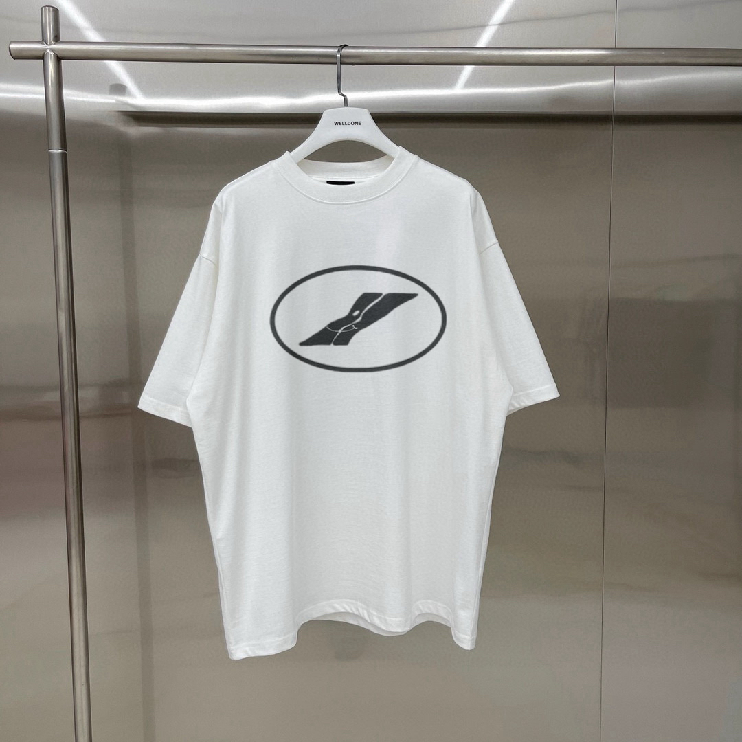 新款💰75 款号: W235# WE11DONE 中性经典字母印花 宽松圆领短袖T恤男女情侣款 面料:280g双纱精梳紧密赛络纺重磅纯棉 工艺:走线均是全身三线缝制,后领织带包边延伸到肩部加固,细节井口与肩膀处的衔接处打了倒针,更加无缝衔接。印花采用高端工艺不易开裂,区别市面普通版本 辅料:吊牌洗水主唛,全套定制的YUAN版辅料 颜色:白色、黑色 尺码:S-L 肩宽 胸围 衣长 S 码 52 112 71 M码 54 118 73 L 码 56 124 75