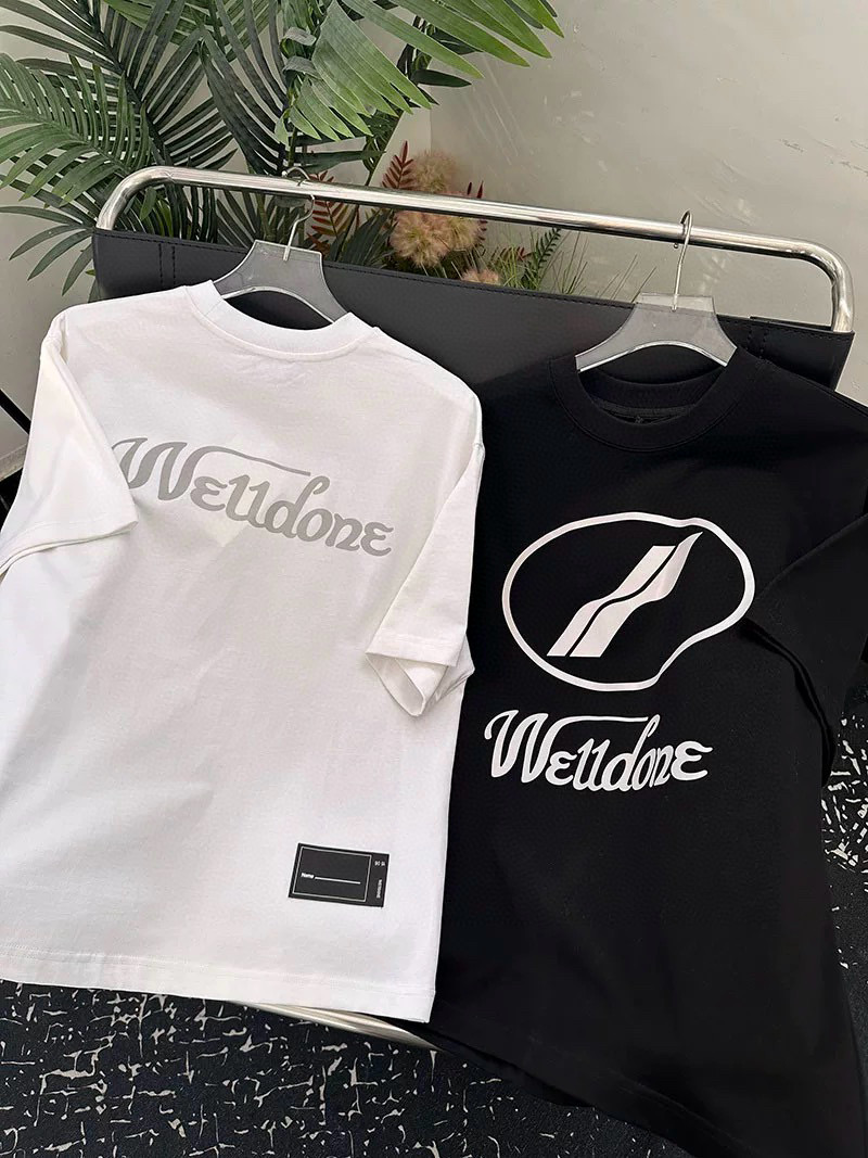 💰83 款号: W127# WE11DONE 反光字母 宽松圆领短袖T恤男女情侣款 面料:280g双纱精梳紧密赛络纺重磅纯棉 工艺:高品质定制原版硅胶标,走线均是全身三线缝制,后领织带包边延伸到肩部加固,细节井口与肩膀处的衔接处打了倒针,更加无缝衔接。印花采用高端工艺不易开裂,前后反光效果,明星网红同款,区别市面普通版本 辅料:吊牌洗水主唛,全套定制的YUAN版辅料 颜色:白色、黑色 尺码:S-L 肩宽 胸围 衣长 S 码 52 112 71 M码 54 118 73 L 码 56 124 75