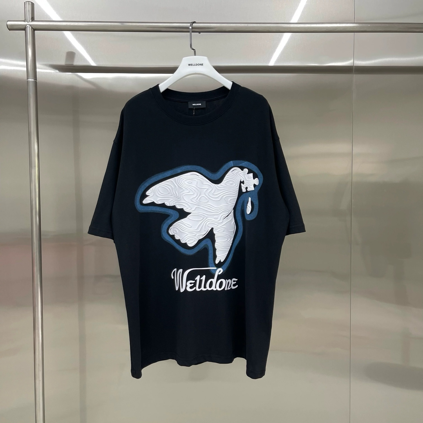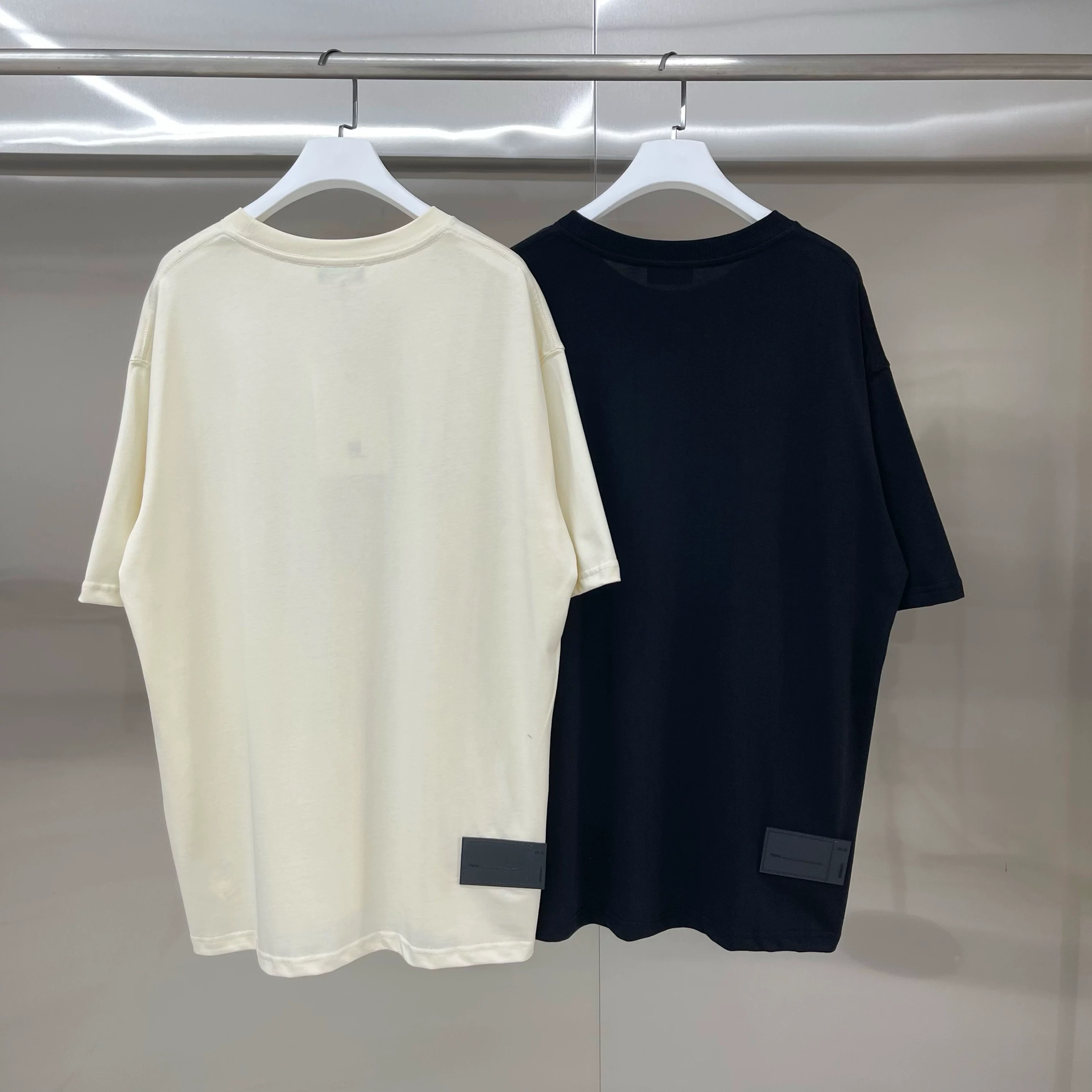 💰75 款号: W112# WE11DONE 和平鸽 宽松圆领短袖T恤男女情侣款 面料:280g双纱精梳紧密赛络纺重磅纯棉 工艺:走线均是全身三线缝制,后领织带包边延伸到肩部加固,细节井口与肩膀处的衔接处打了倒针,更加无缝衔接。印花采用高端工艺不易开裂,区别市面普通版本 辅料:吊牌洗水主唛,全套定制的YUAN版辅料 颜色:杏色、黑色 尺码:S-L 肩宽 胸围 衣长 S 码 52 112 71 M码 54 118 73 L 码 56 124 75