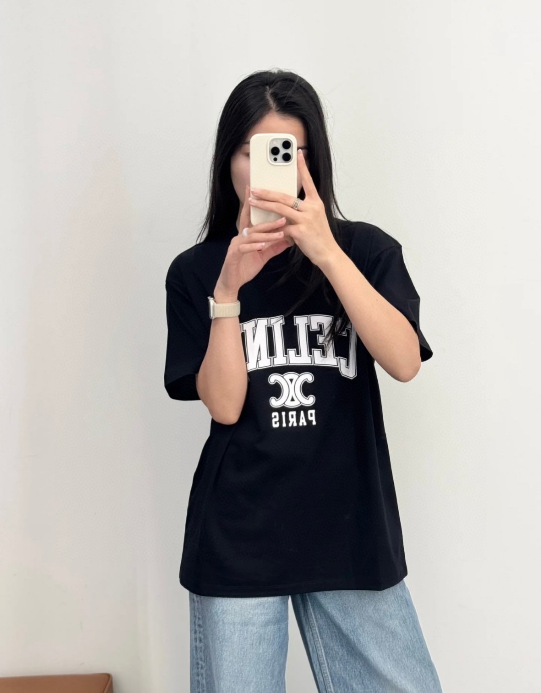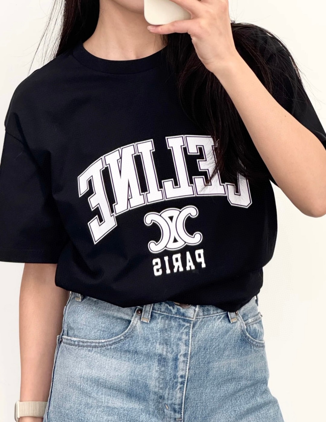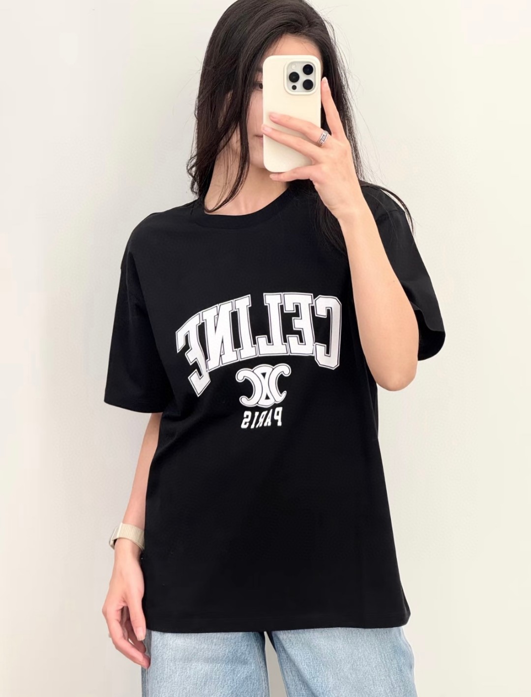 CELINE/赛琳 经典字母印花基础款短袖T恤 上身效果#