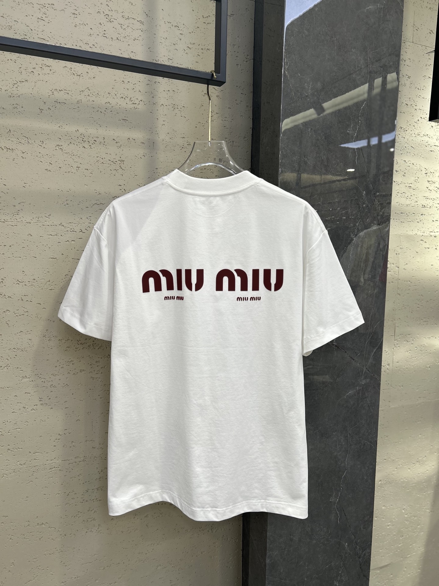 25sMiuMiu小字母印花短袖T恤 男女🉑️ 版型宽松不挑人 百搭休闲 小字母简单又好看 面料采用索罗娜➕棉 有抑菌和防晒作用 工艺:印花 码数S-XL 价格78