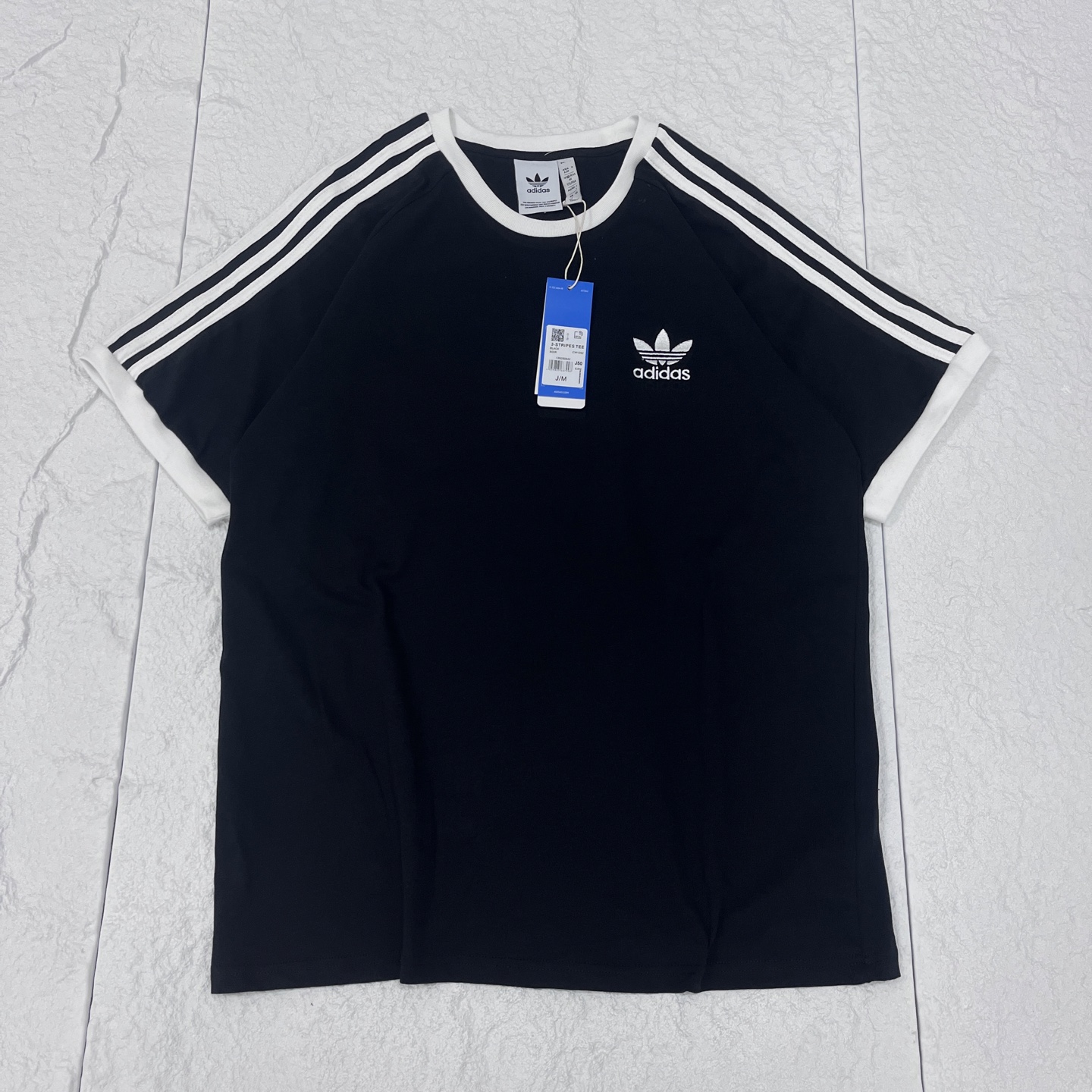 💰65! 【Jennie同款韩版三叶草originals 复古撞色条纹休闲插肩袖合身短袖T 男女同款 颜色:黑色/ 白色/雾霾蓝/海军蓝 尺码:S-M-L-XL 春夏必备单品,基础款不挑人,get韩女穿搭,男生也OK~不挑人,各种风格都可以驾驭 220g纯棉质感,手感软呼呼,现在衣服版型普遍较大,偶尔也来一两款比较合身休闲的短袖,女生选择合身或者宽松一码两种风格,看个人喜好, 短袖,短裙,长裤都能轻松搭配,复古三叶草每年都会更新,这款很经典,入了不亏~ 插肩袖 不计肩宽 S 胸围107 衣长70 M 胸围113 衣长71.5 L 胸围117 衣长73.5 XL胸围121 衣长74.5