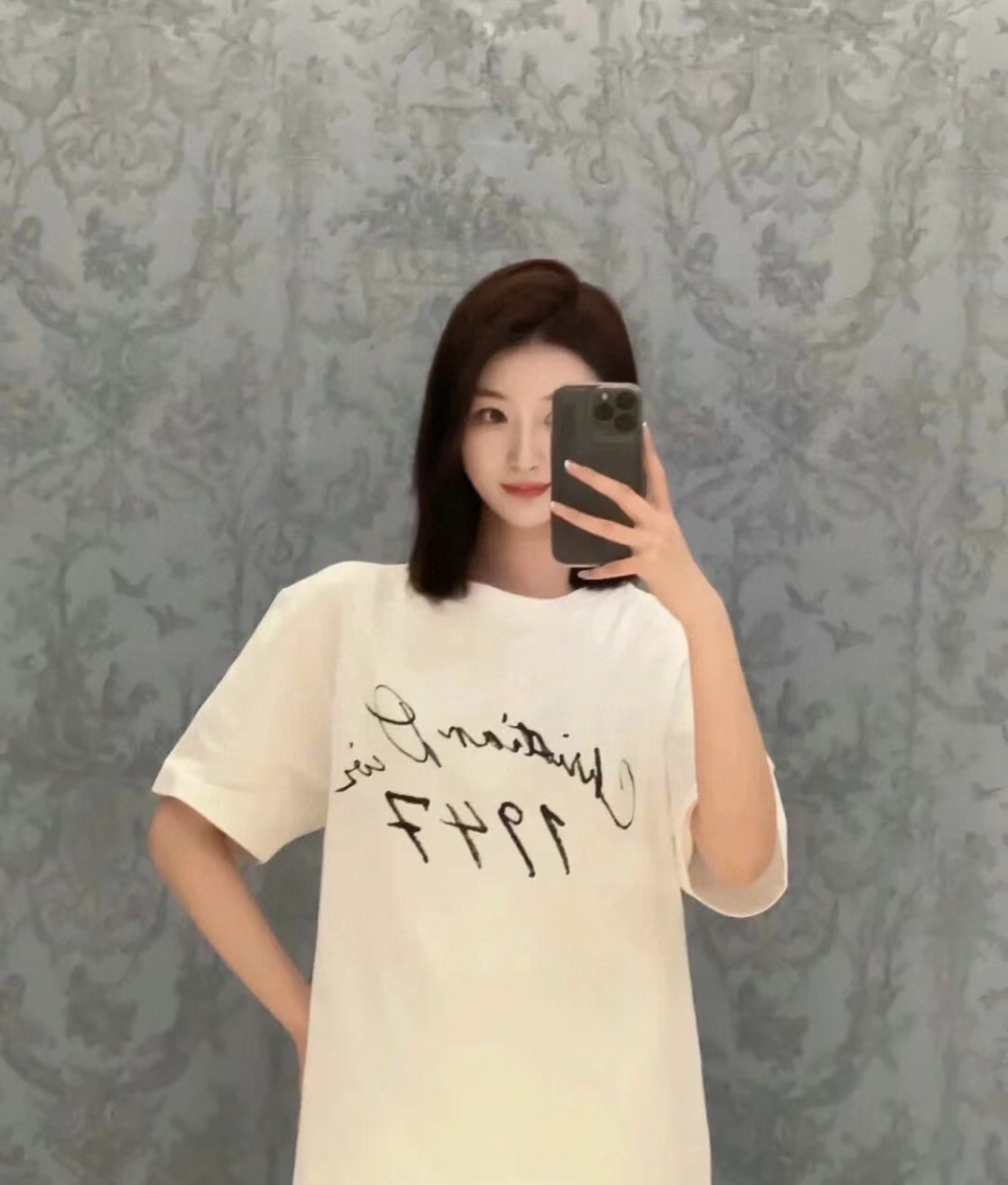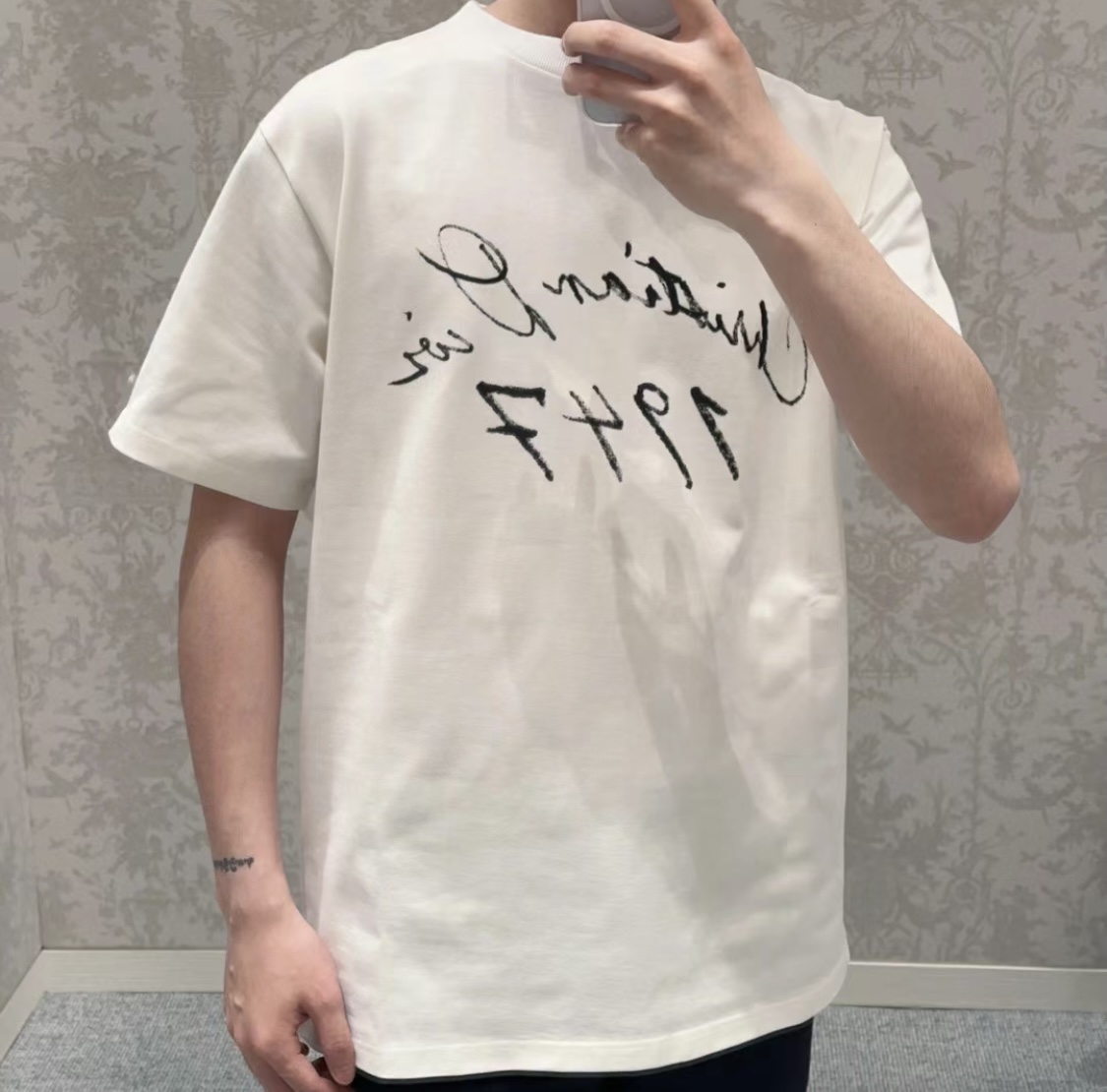 DIOR/迪奥 47logo标语印花情侣款短袖TEE 上身效果#