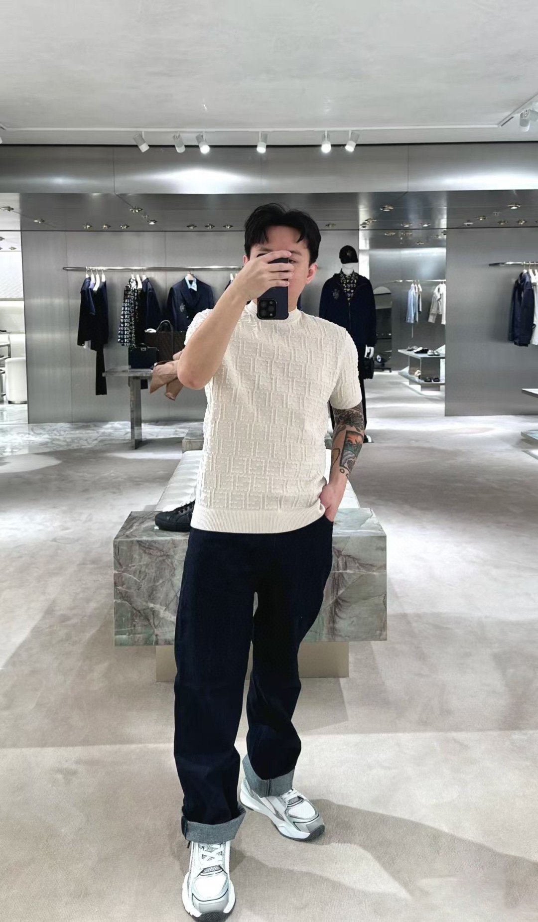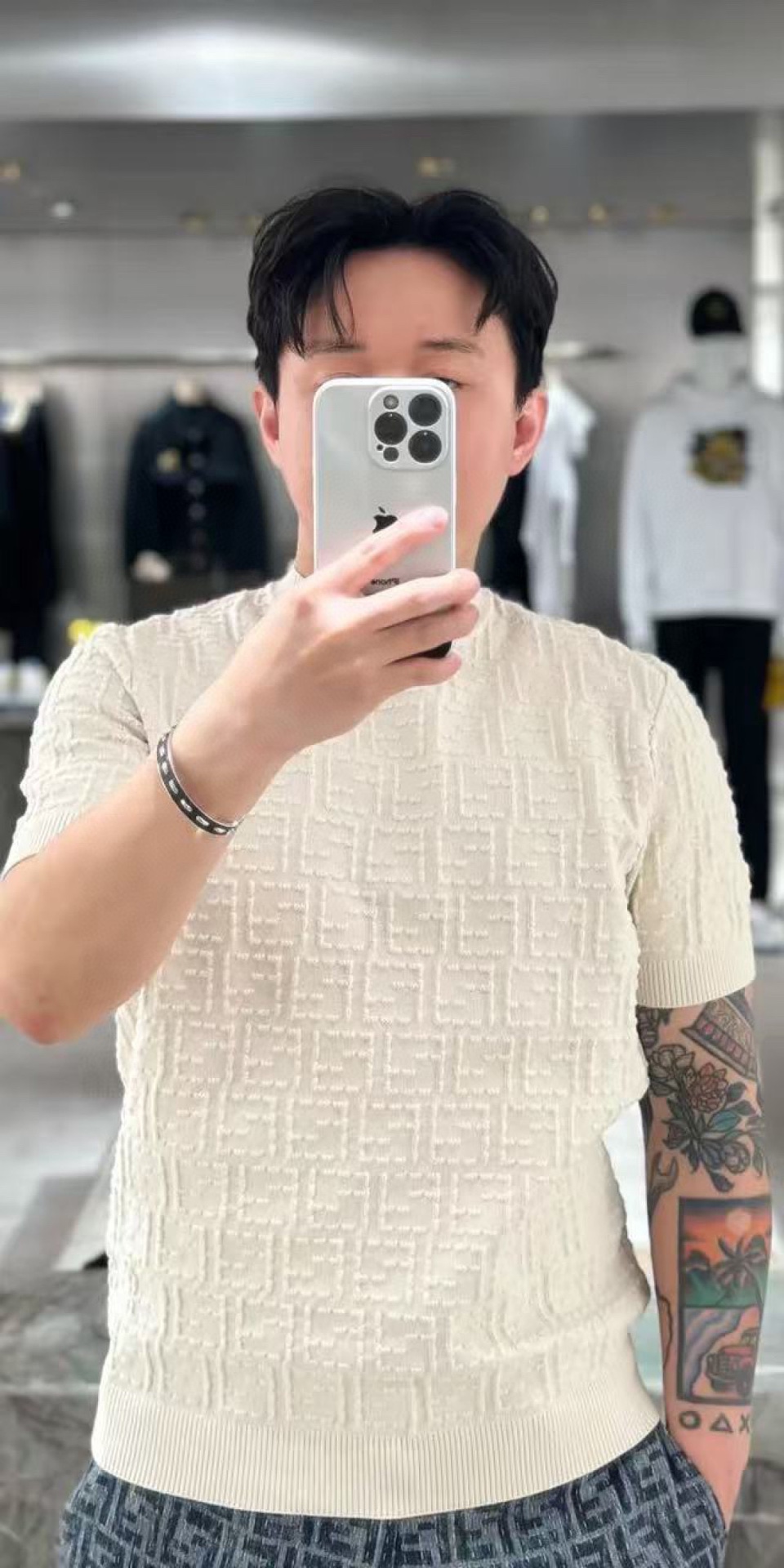 FENDI芬迪FD 双F Sellerid全印针织短袖T恤 上身效果#